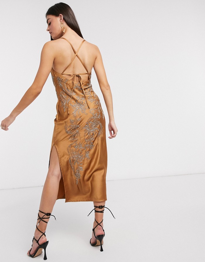 ZDOBIONA SATYNOWA SUKIENKA CEKINY (38)