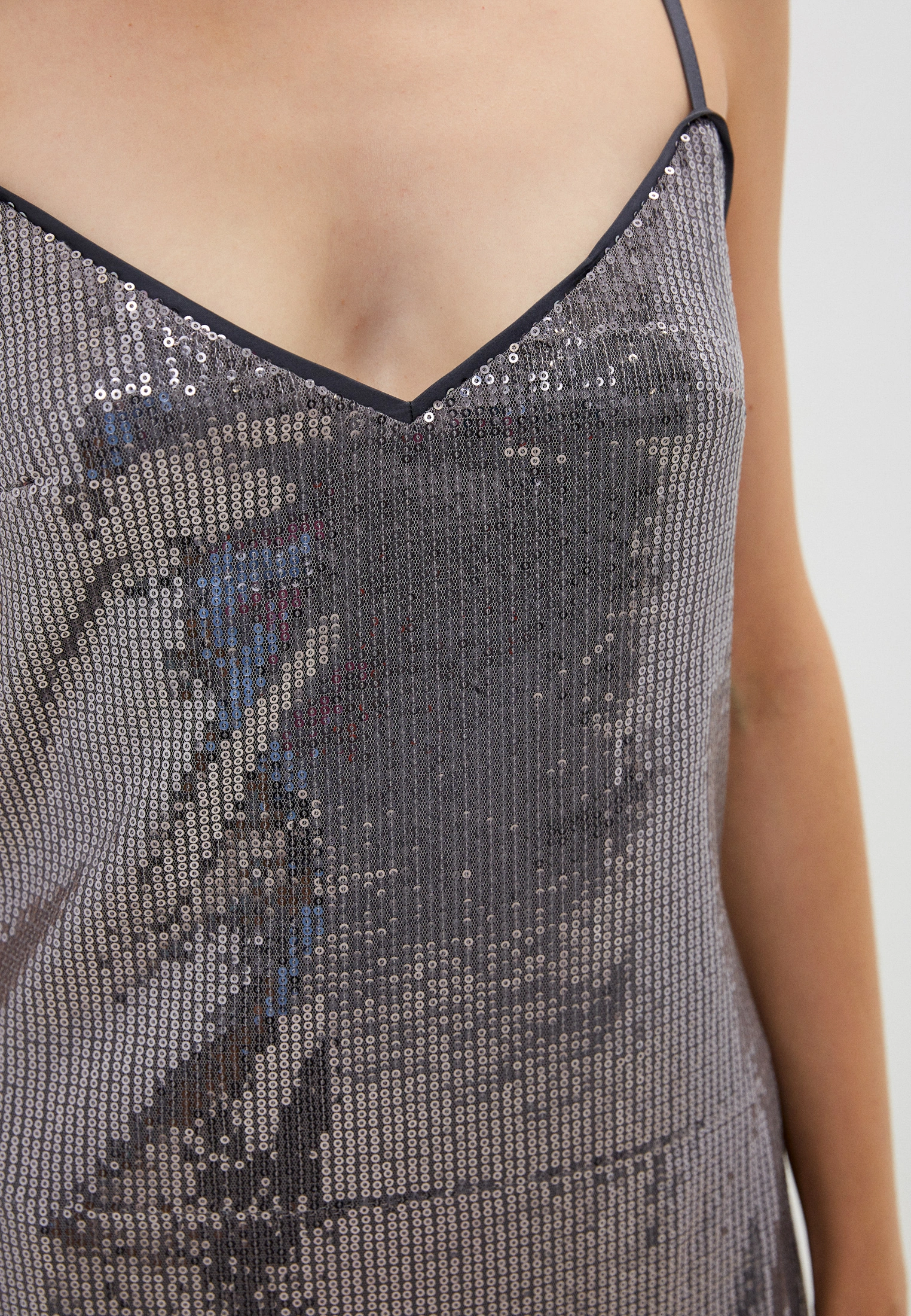 Srebrna cekinowa sukienka ramiączka (M)