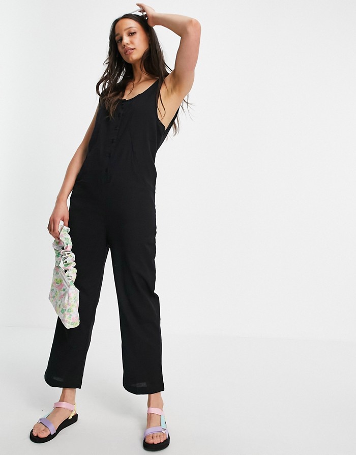 CZARNY KOMBINEZON BEZ RĘKAWÓW GUZIKI (34)