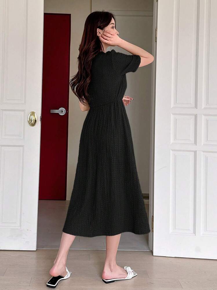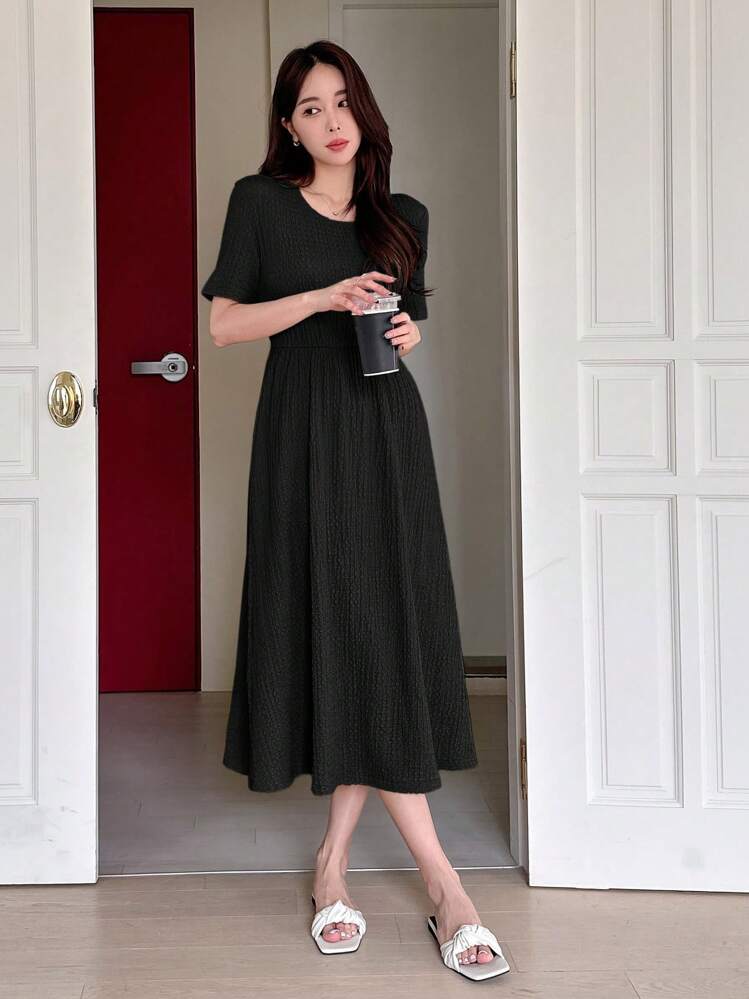 "Czarna sukienka z krótkimi rękawami i okrągłym dekoltem to idealna propozycja na każdą okazję. Stylowa i wygodna, pasuje do wielu stylizacji. Doskonała na letnie dni oraz wieczorne wyjścia."