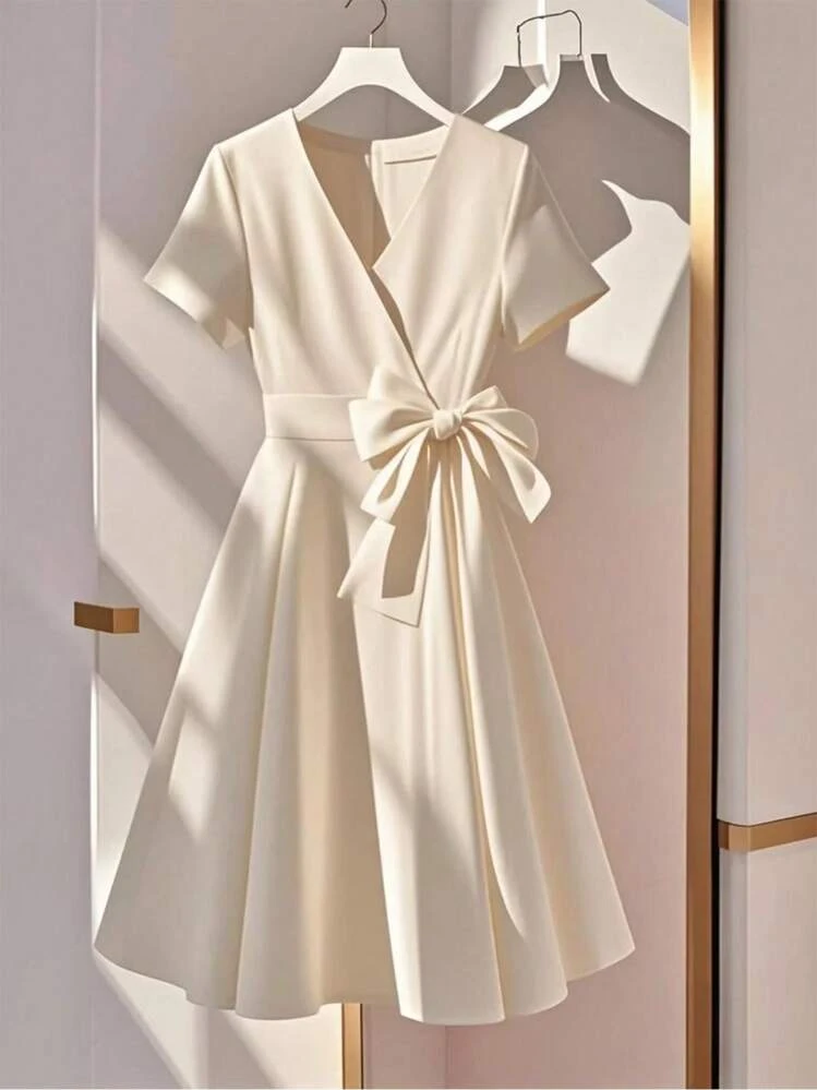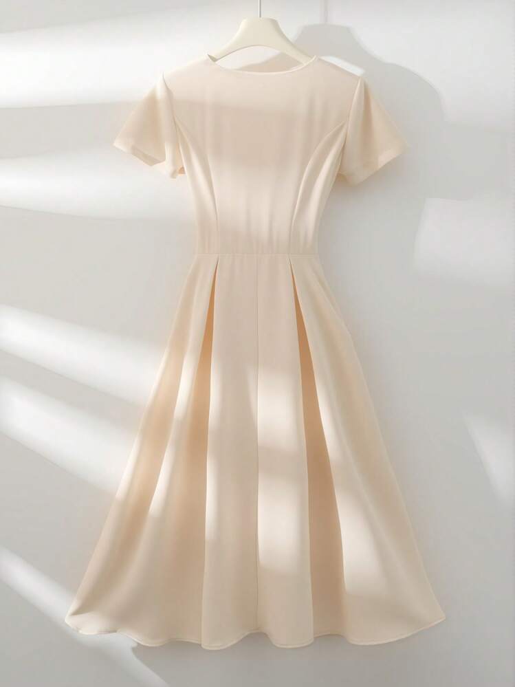 Ta piękna midi sukienka w kolorze ecru jest idealna na letnie dni. Posiada kopertowy dekolt i krótkie rękawy, a także wiązanie w pasie, które podkreśla talię. Świetnie wygląda w połączeniu z sandałkami i małym torebką.