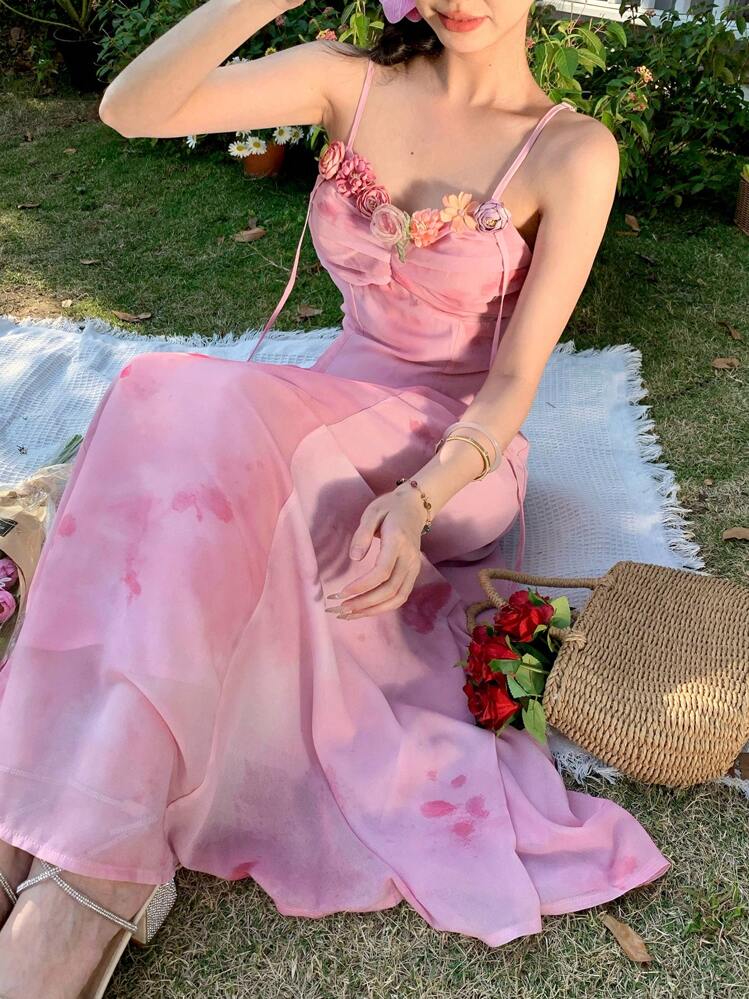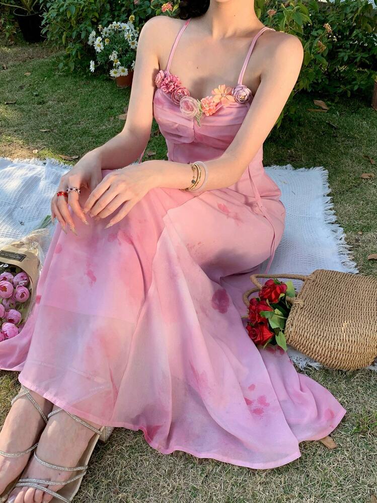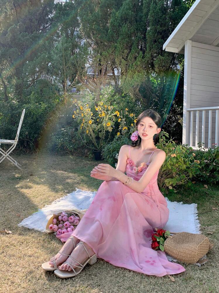 Ta piękna różowa sukienka maxi z delikatnym wzorem to idealna opcja na letnie wieczory. Dekolt w kształcie serca oraz ramiączka nadają jej zmysłowy charakter, a luźny fason zapewnia wygodę.