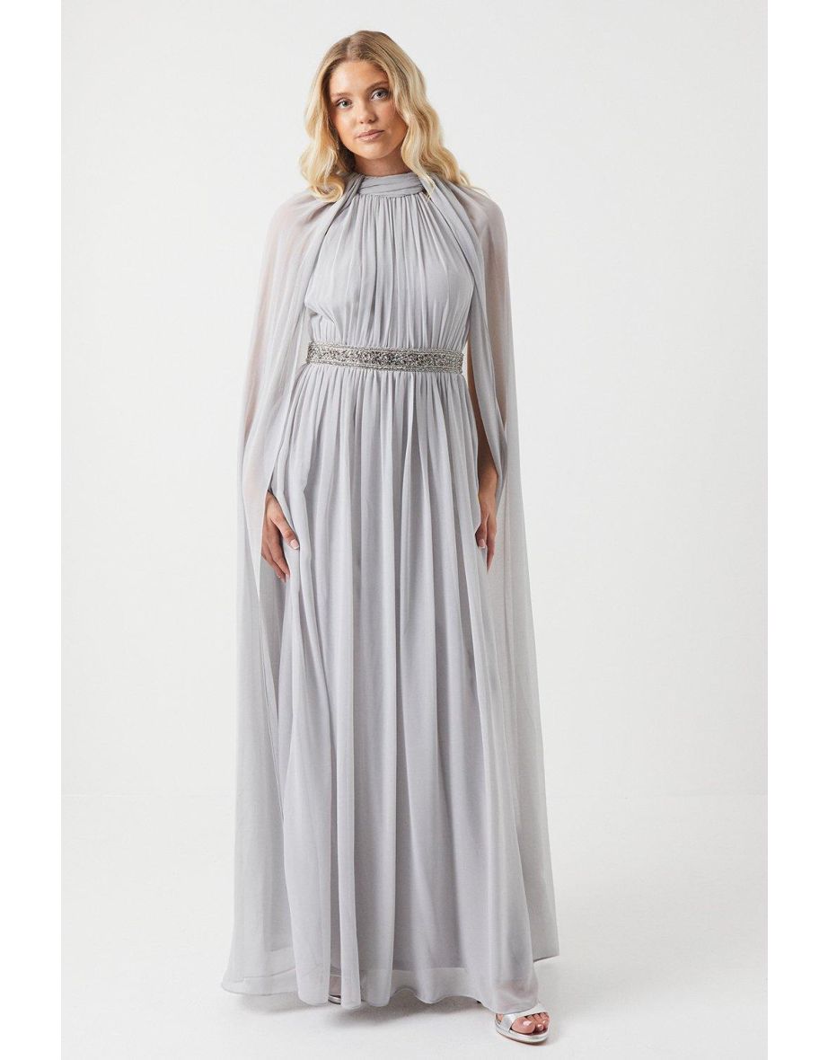 "Elegancka sukienka wykonana z lekkiego szyfonu w kolorze szarym. Posiada wysoki dekolt typu stójka oraz długi rękaw, co nadaje jej klasycznego charakteru. Idealna na wieczorne wyjścia i specjalne okazje."