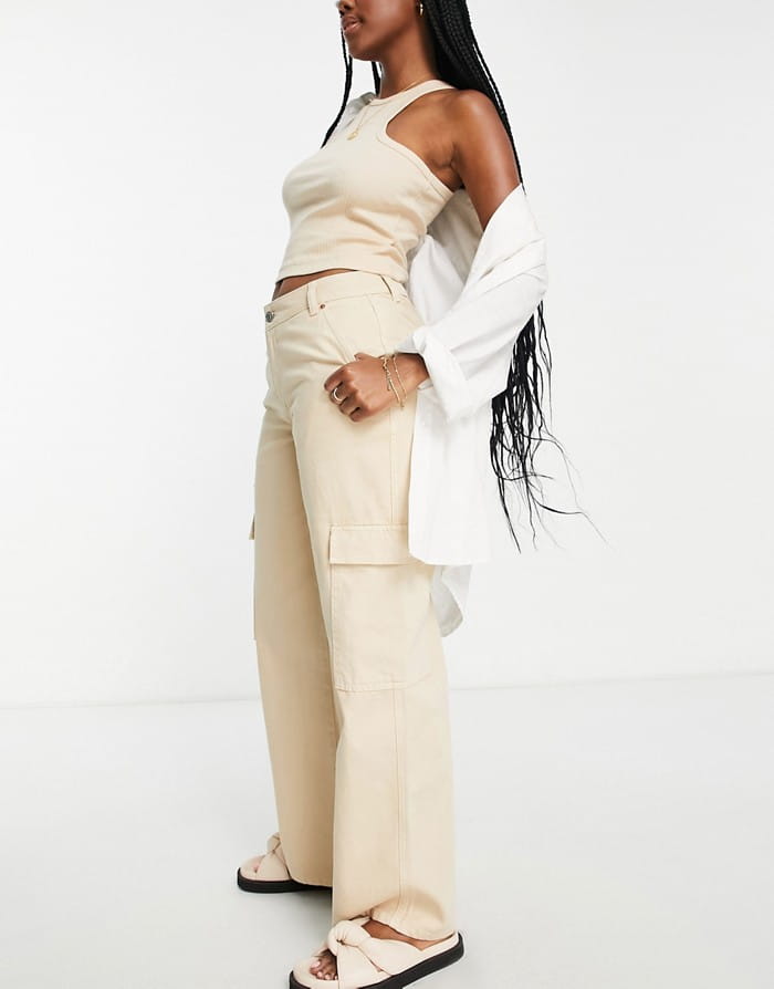 Beżowe jeansowe bojówki (36/32)