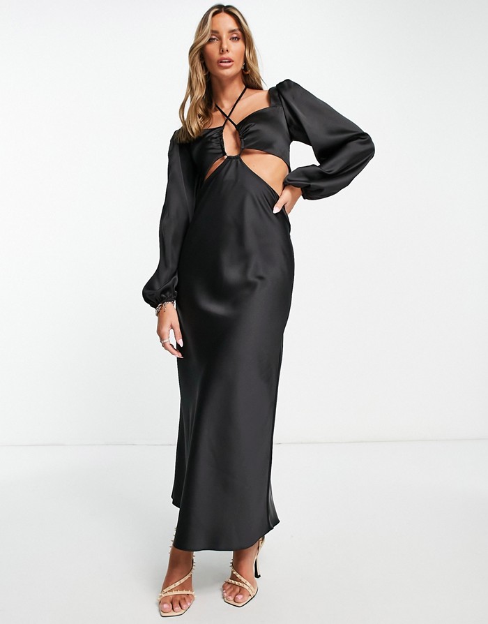 CZARNA SATYNOWA SUKIENKA MIDI (38)