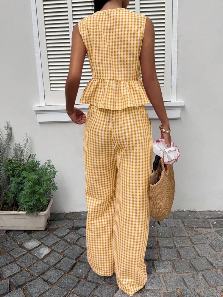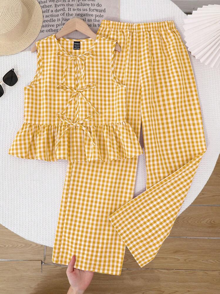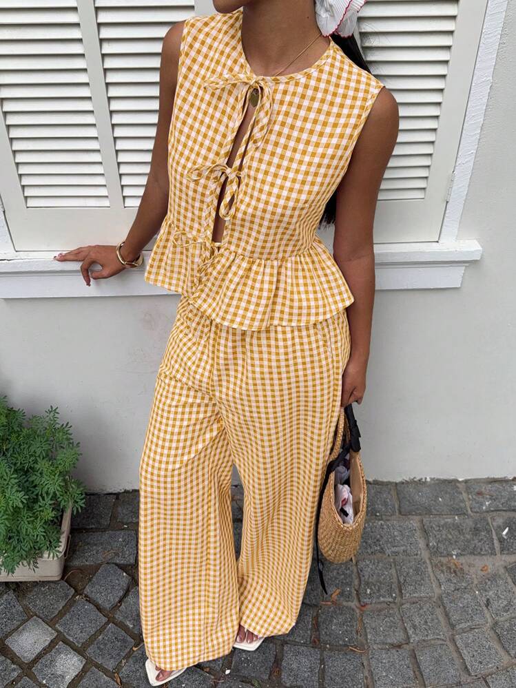 Kraciasty komplet spodnie bluzka (L)