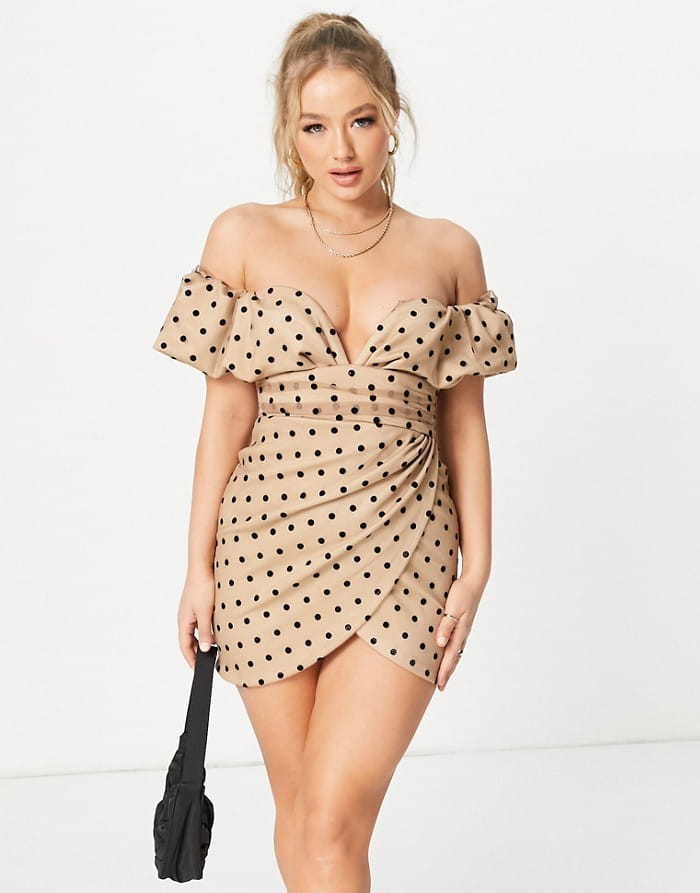 Beżowa sukienka mini grochy (32)