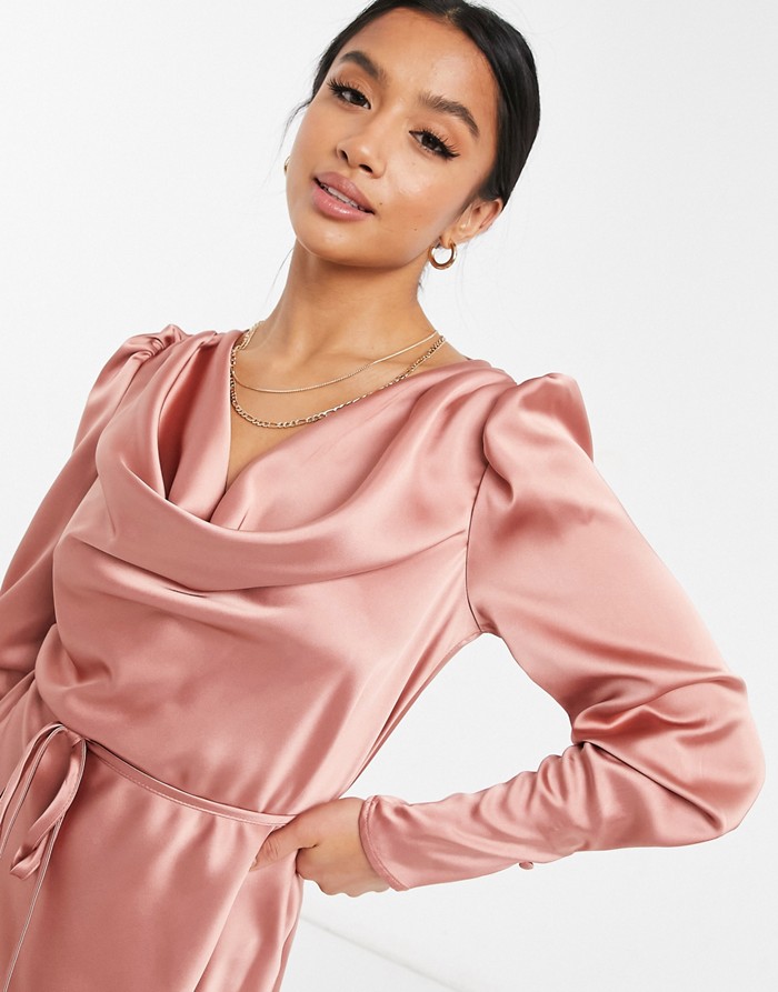 SATYNOWA SUKIENKA DŁUGIE RĘKAWY PASEK (36)