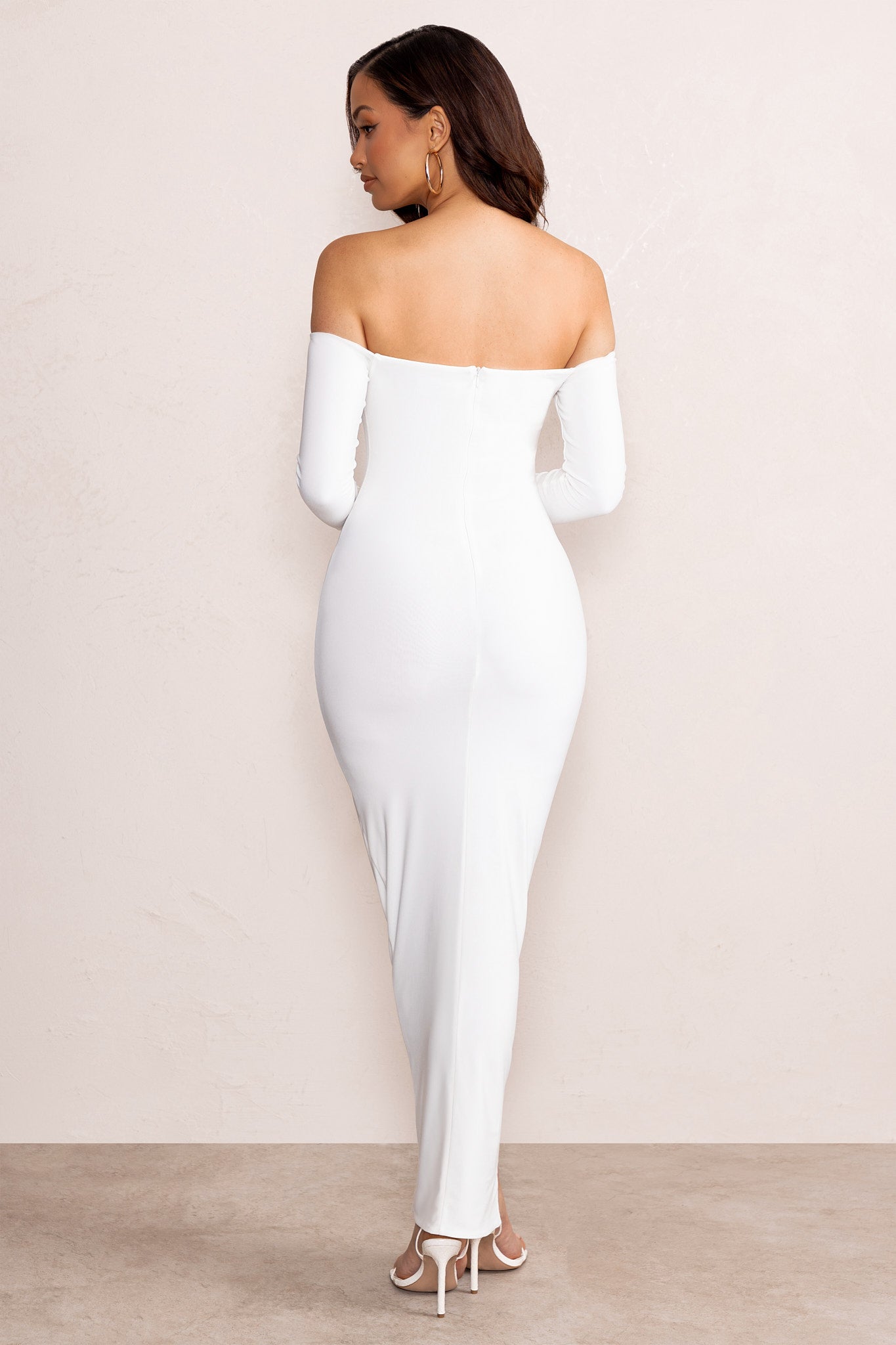 Śmietanowa sukienka odkryte ramiona (38)