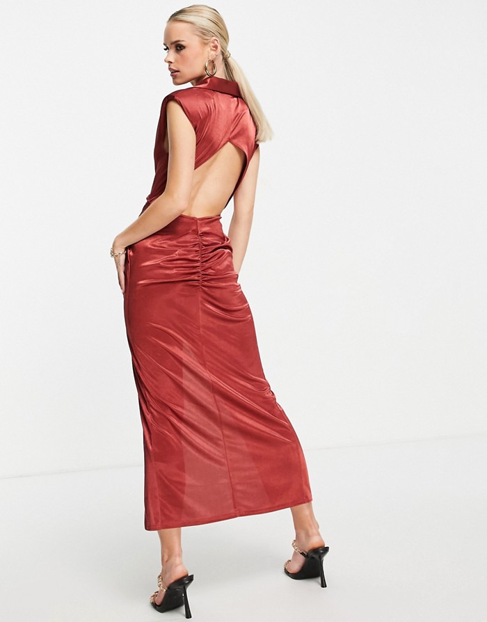 MIEDZIANA SUKIENKA MIDI KOŁNIERZ (34)
