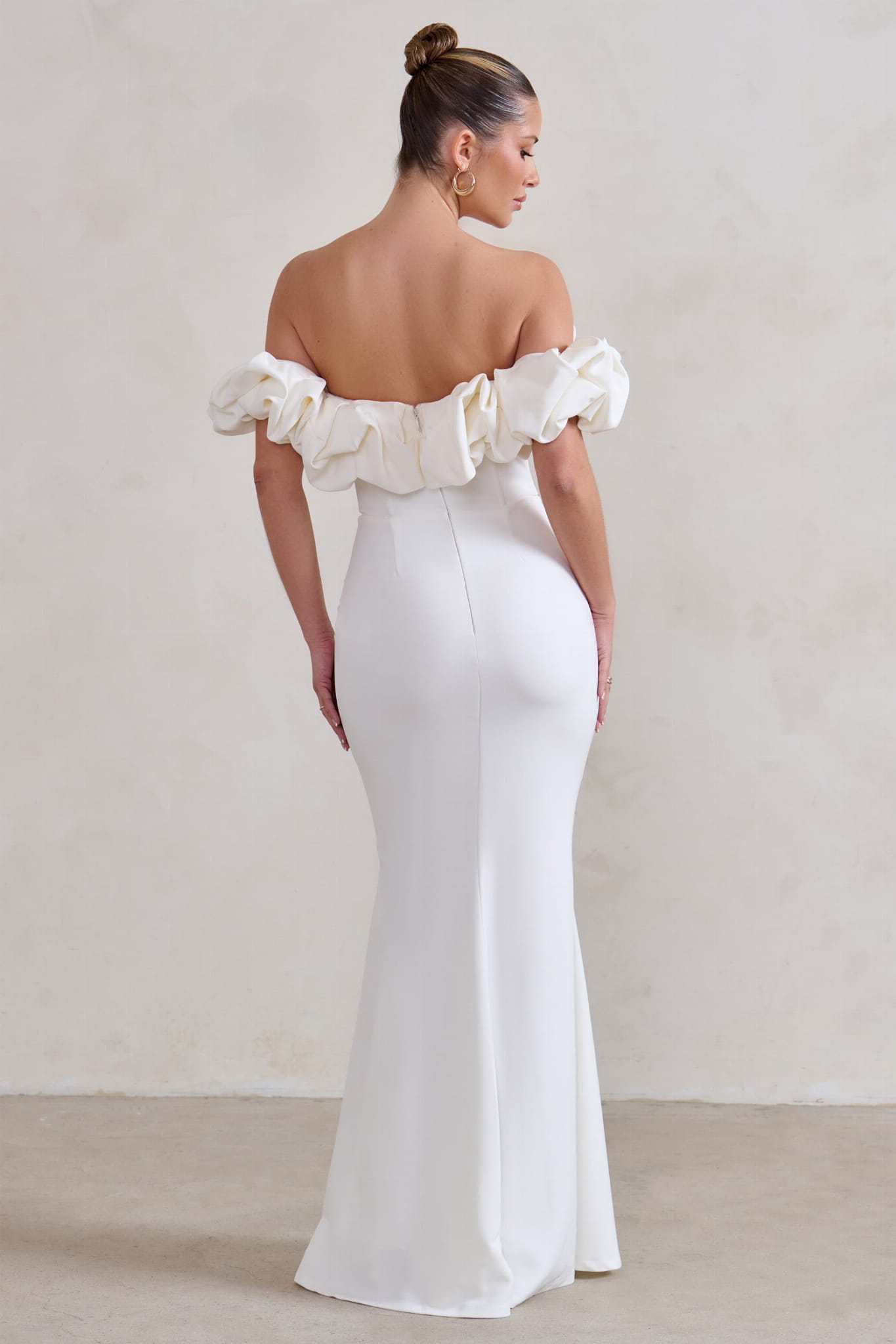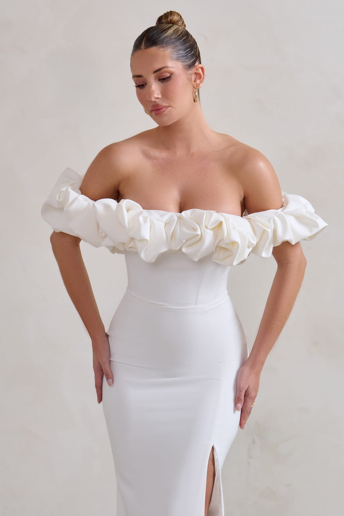 Śmietankowa suknia off shoulder (36)