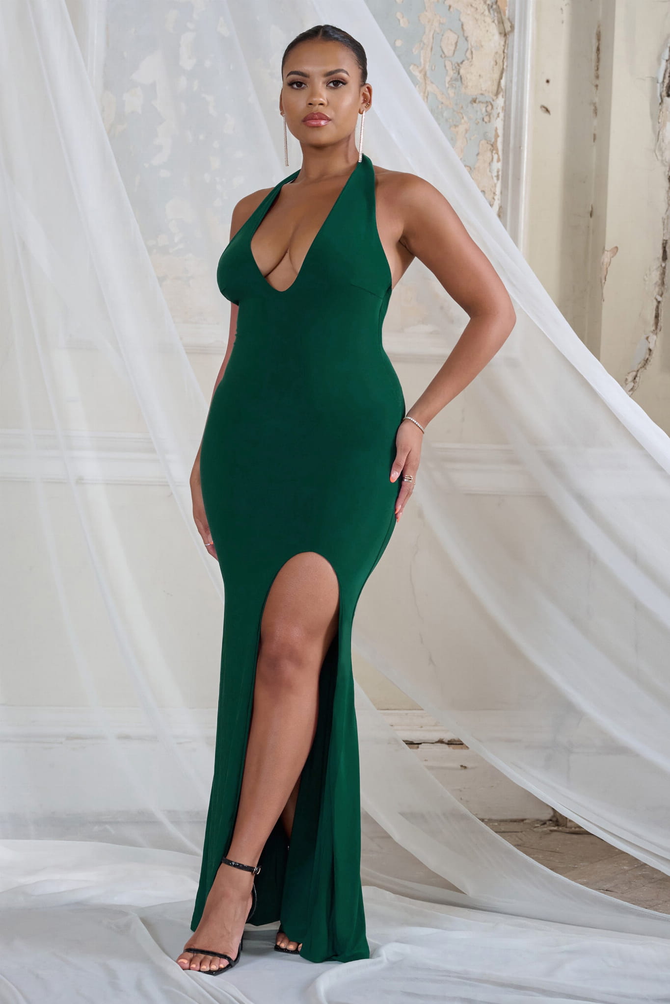 Zielona asymetryczna sukienka wiązanie (40)