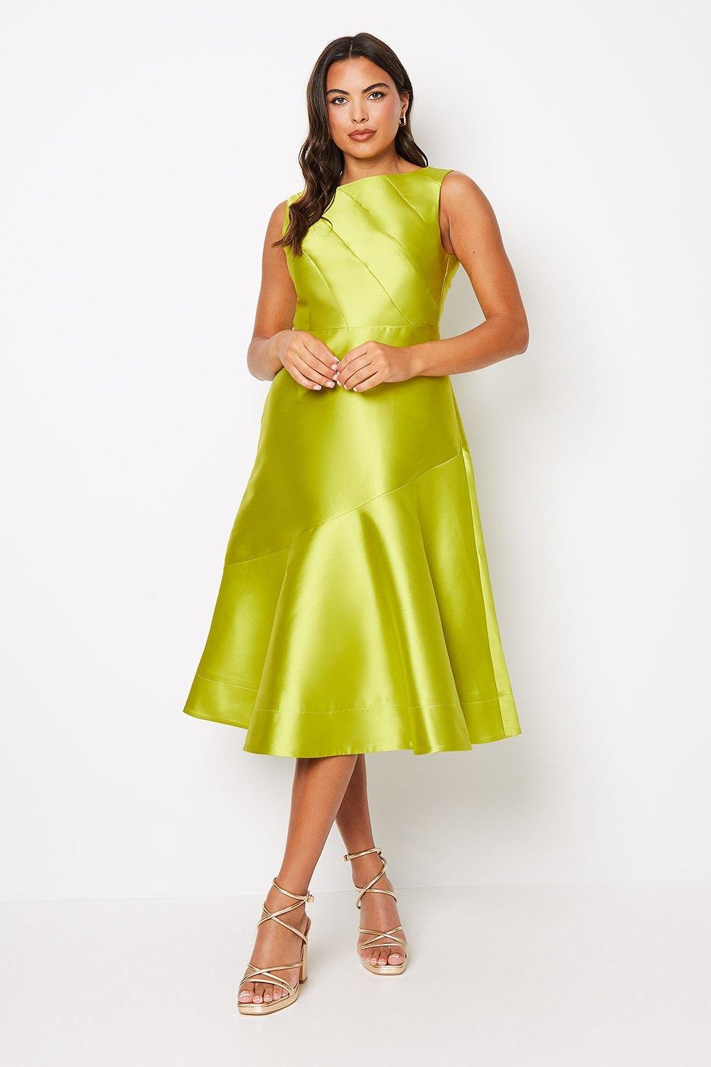 Modna i wygodna sukienka midi w jasnym odcieniu zieleni. Posiada okrągły dekolt, który dodaje jej kobiecego charakteru. Bez rękawów, dzięki czemu jest idealna na letnie dni.
