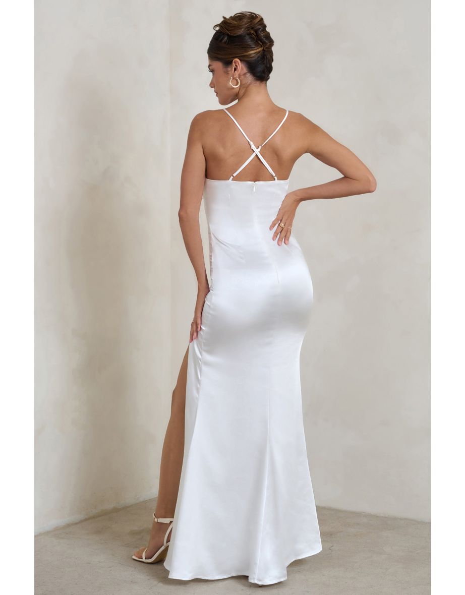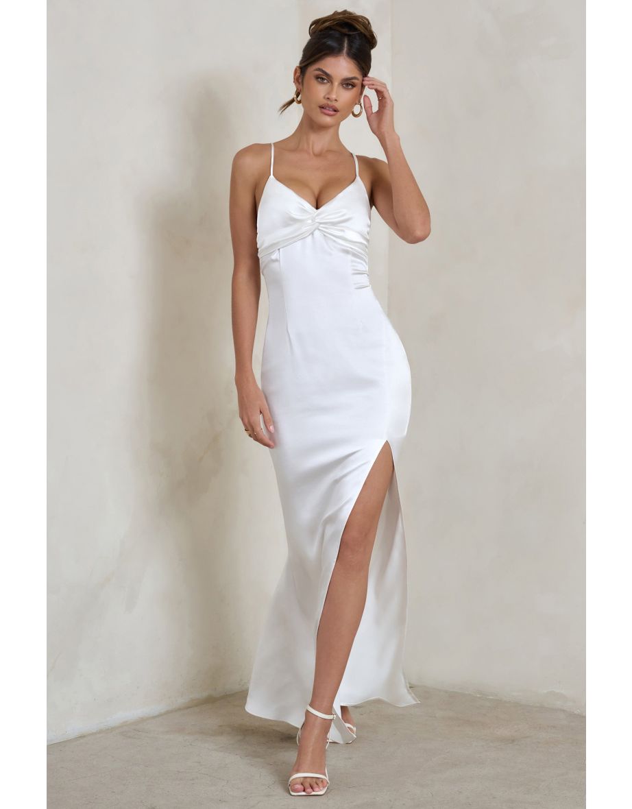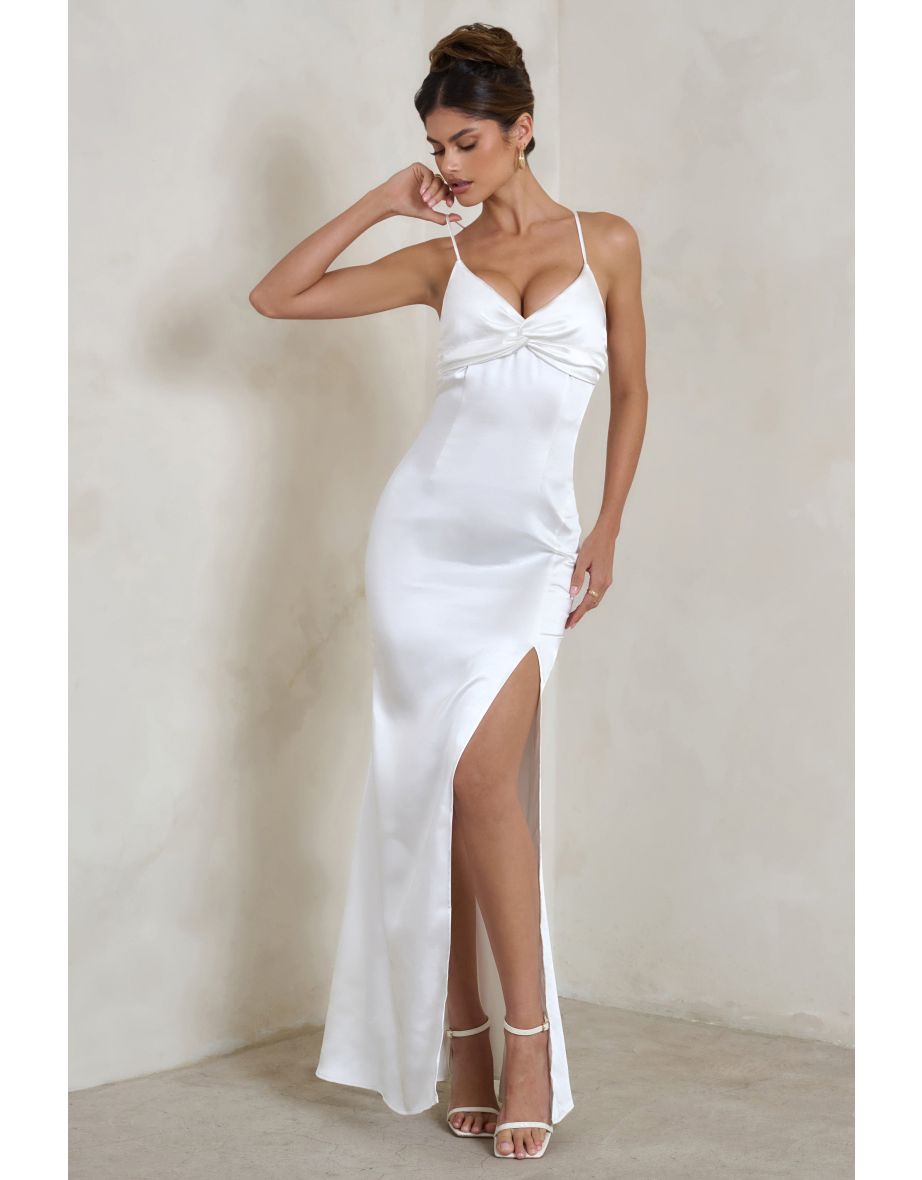 Biała satynowa sukienka maxi rozcięcie (40)