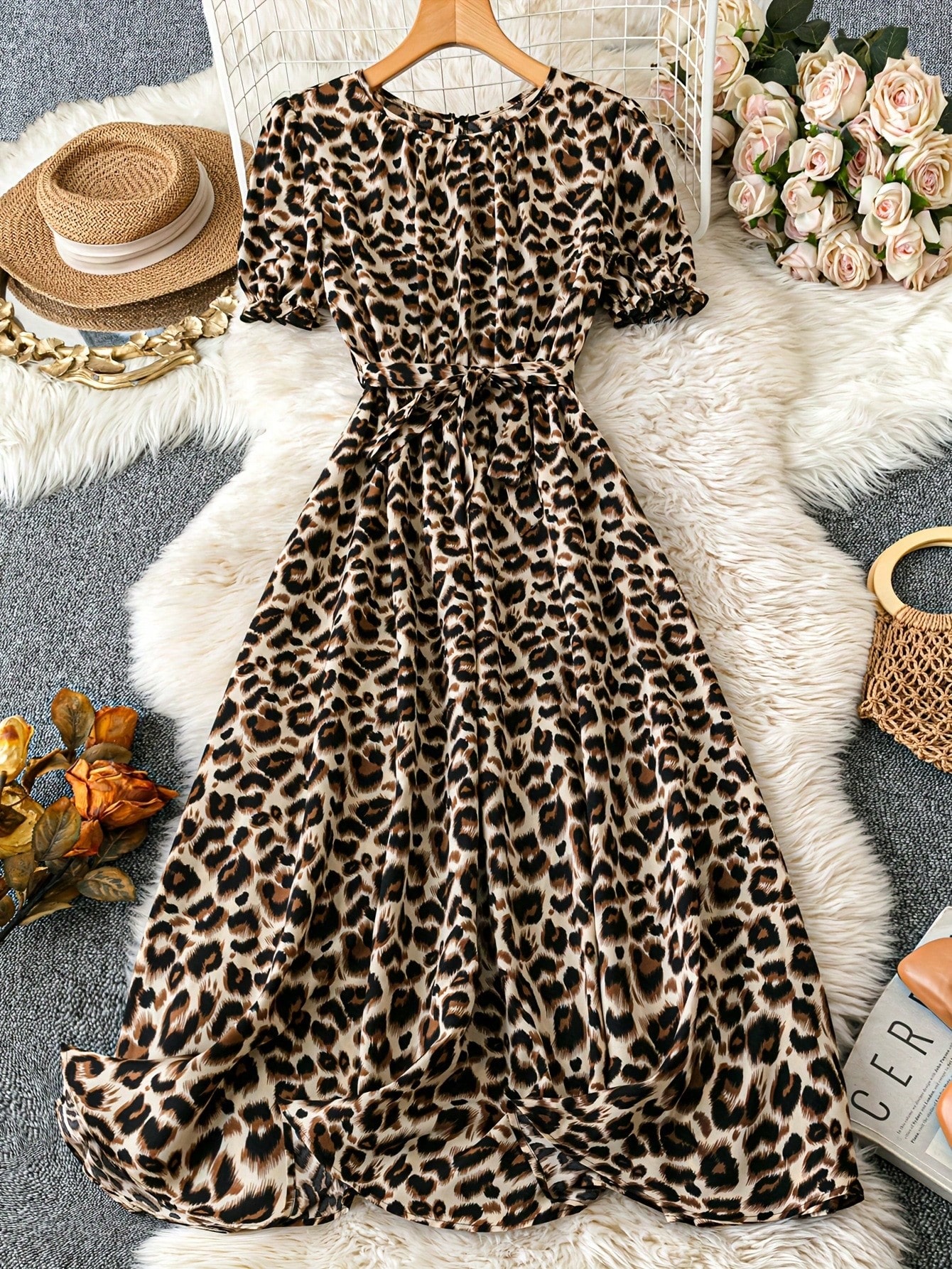 Efektowna sukienka midi w paseczki to idealny wybór na ciepłe letnie dni. Wykonana z lekkiego materiału w beżowym kolorze, którego uroku dodają kolorowe wzory. Okrągły dekolt i krótkie rękawy dodają jej kobiecego uroku. Pasująca do wielu stylizacji, doskonała zarówno na co dzień, jak i na specjalne okazje.