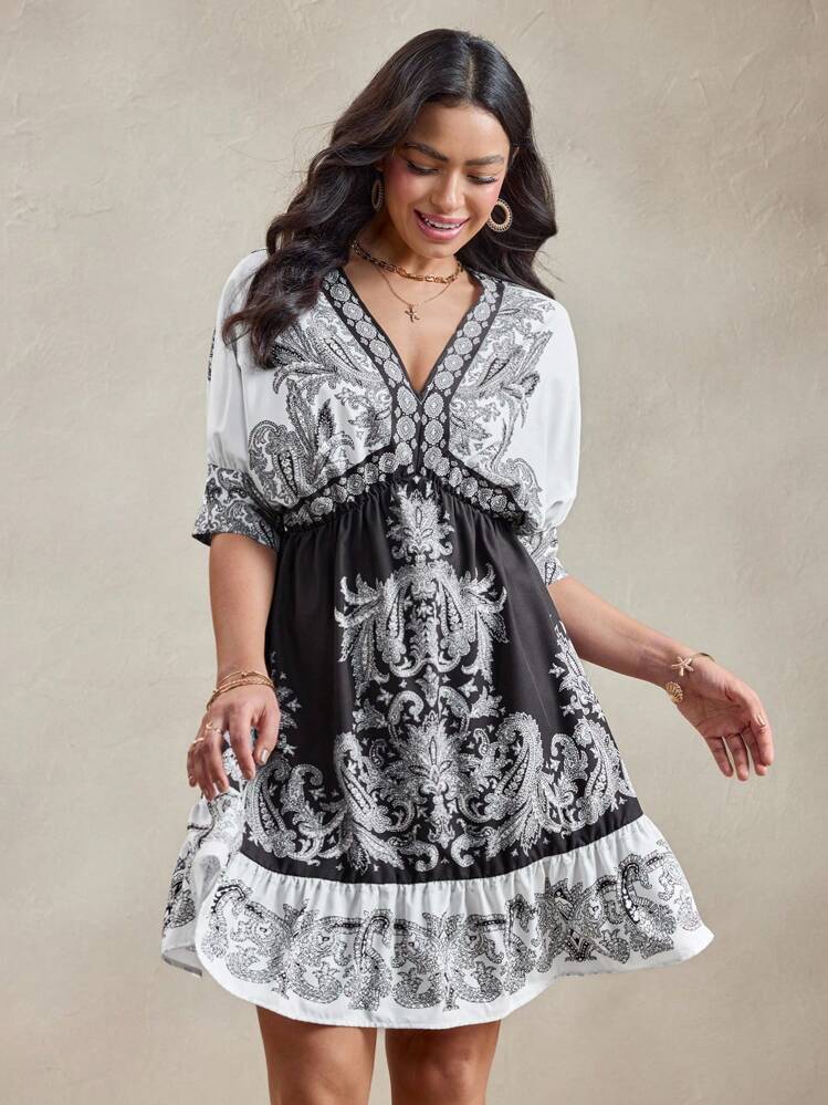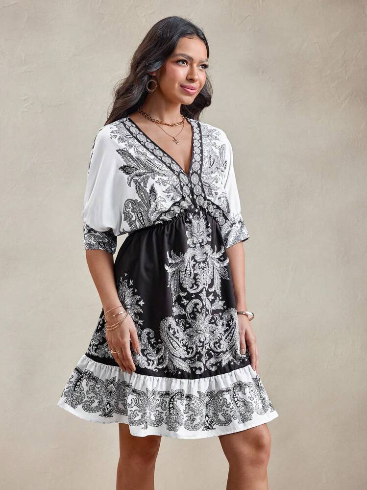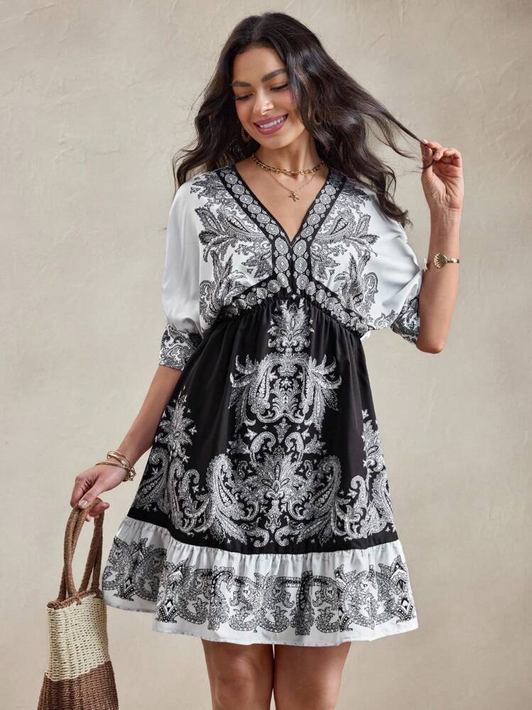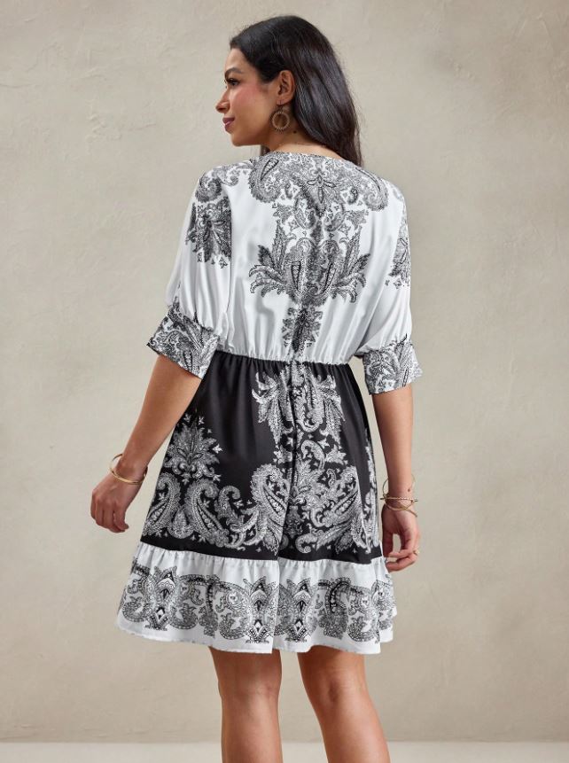 Wzorzysta sukienka pasek (S)
