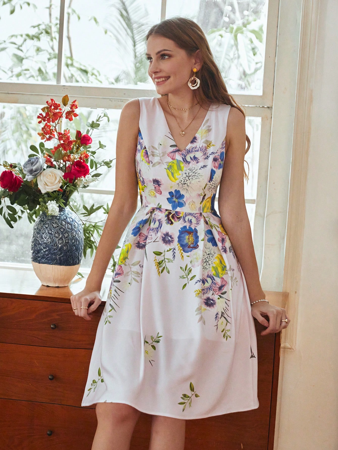 Liliowa sukienka bez rękawów kwiaty (L)