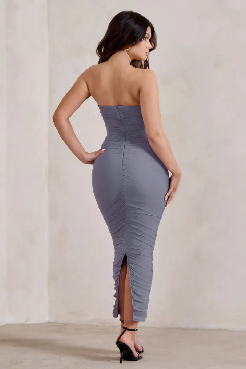 .Elegancka i wygodna sukienka ołówkowa w kolorze szarym. Dekolt odkryte ramiona podkreśla piękno szyi, a bezrękawnikowy styl nadaje jej modny wygląd. Idealna na wieczorne wyjścia i ważne spotkania.