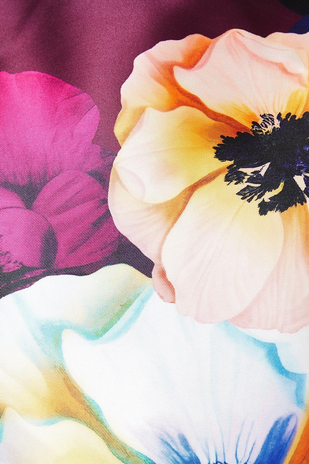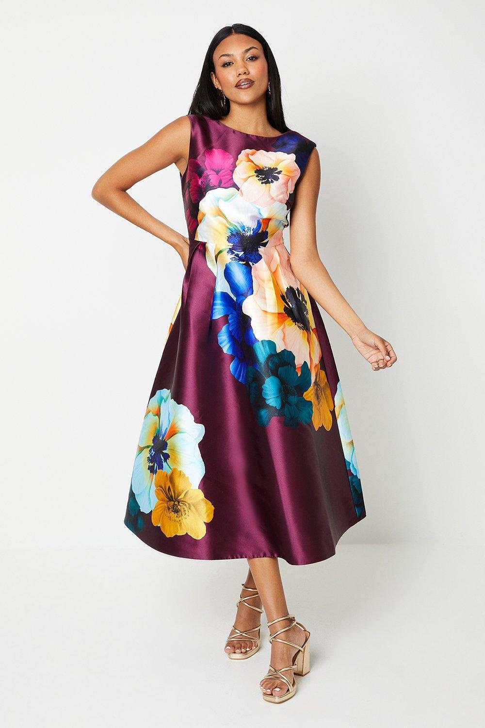 Elegancka sukienka o długości midi w modnym, burgundowym kolorze. Ozdobiona pięknym wzorem, posiada okrągły dekolt i brak rękawów. Idealna dla kobiet ceniących wygodę i stylowe połączenie kolorów.