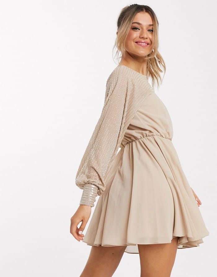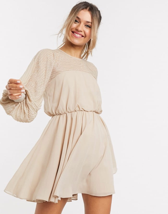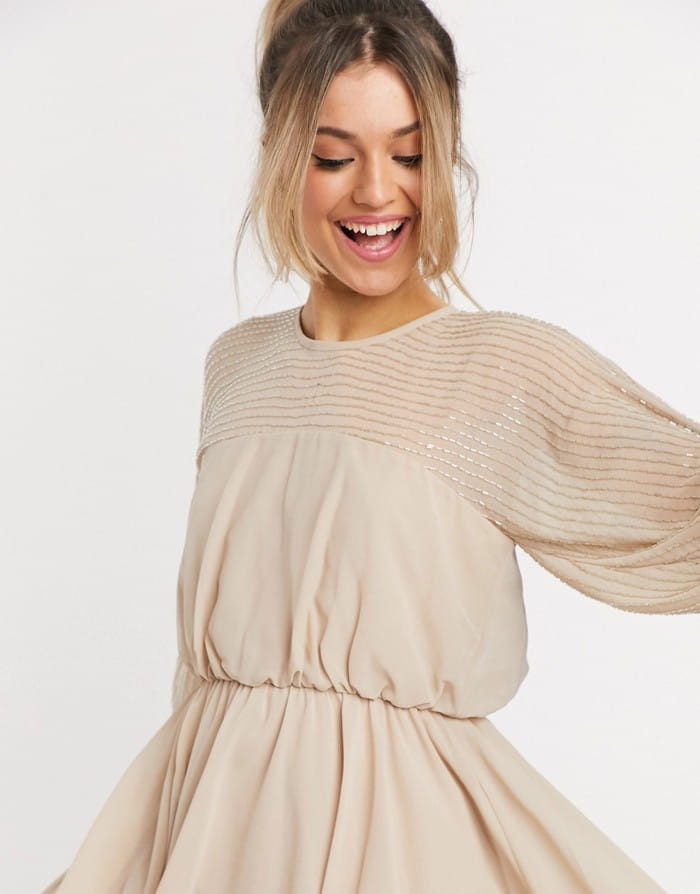 Beżowa sukienka szyfonowa mini (42)