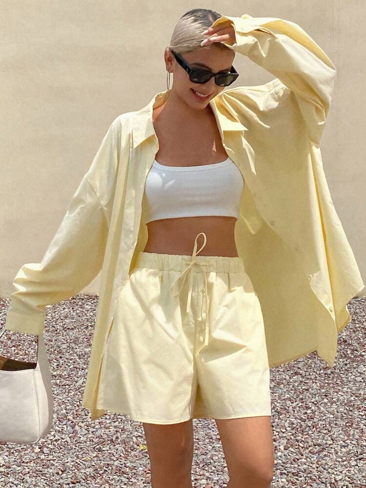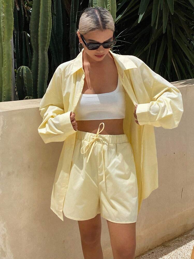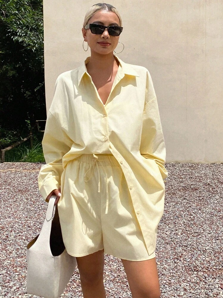 Żółty komplet szorty koszula (L)