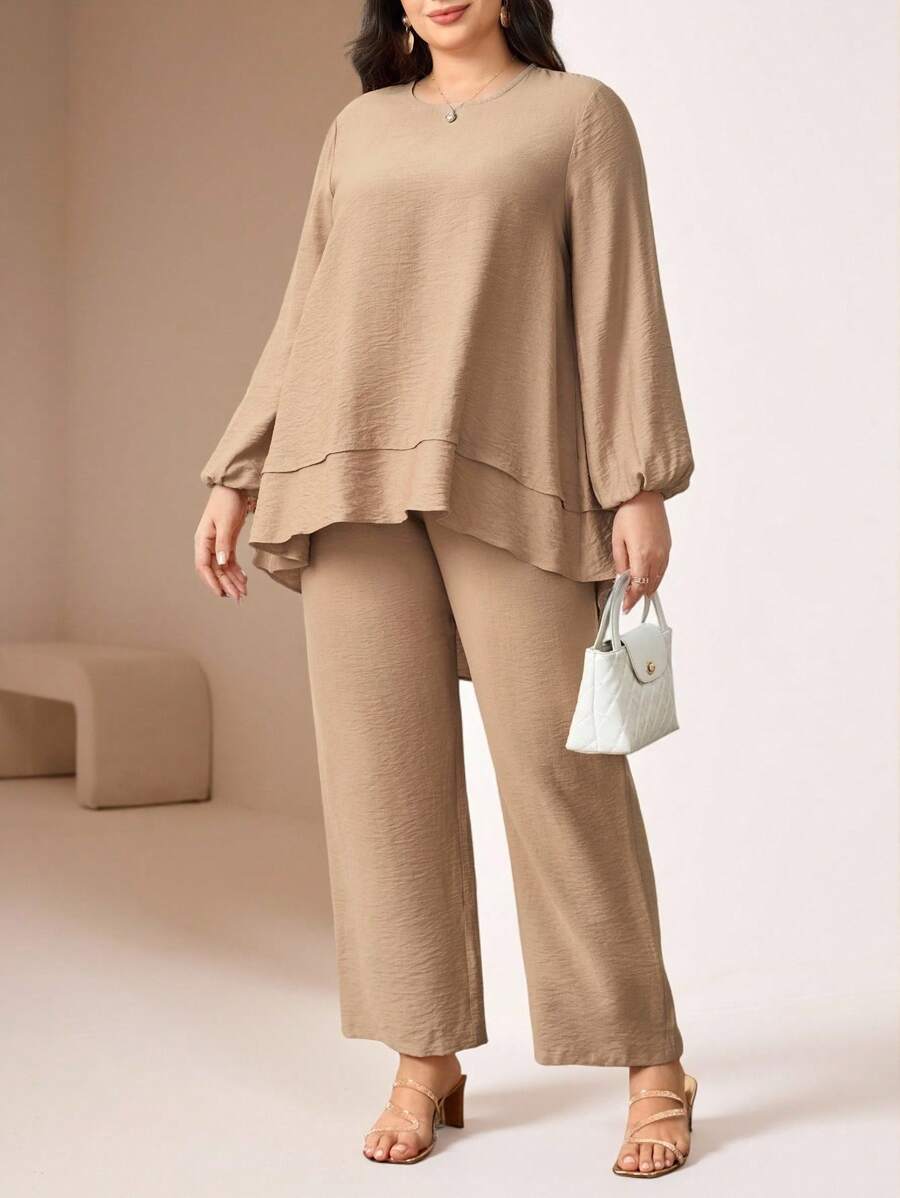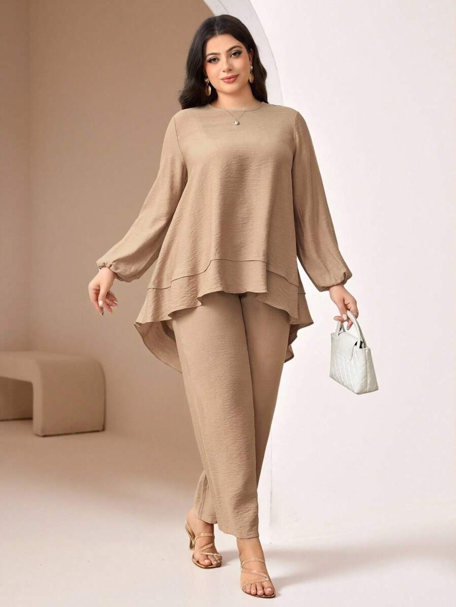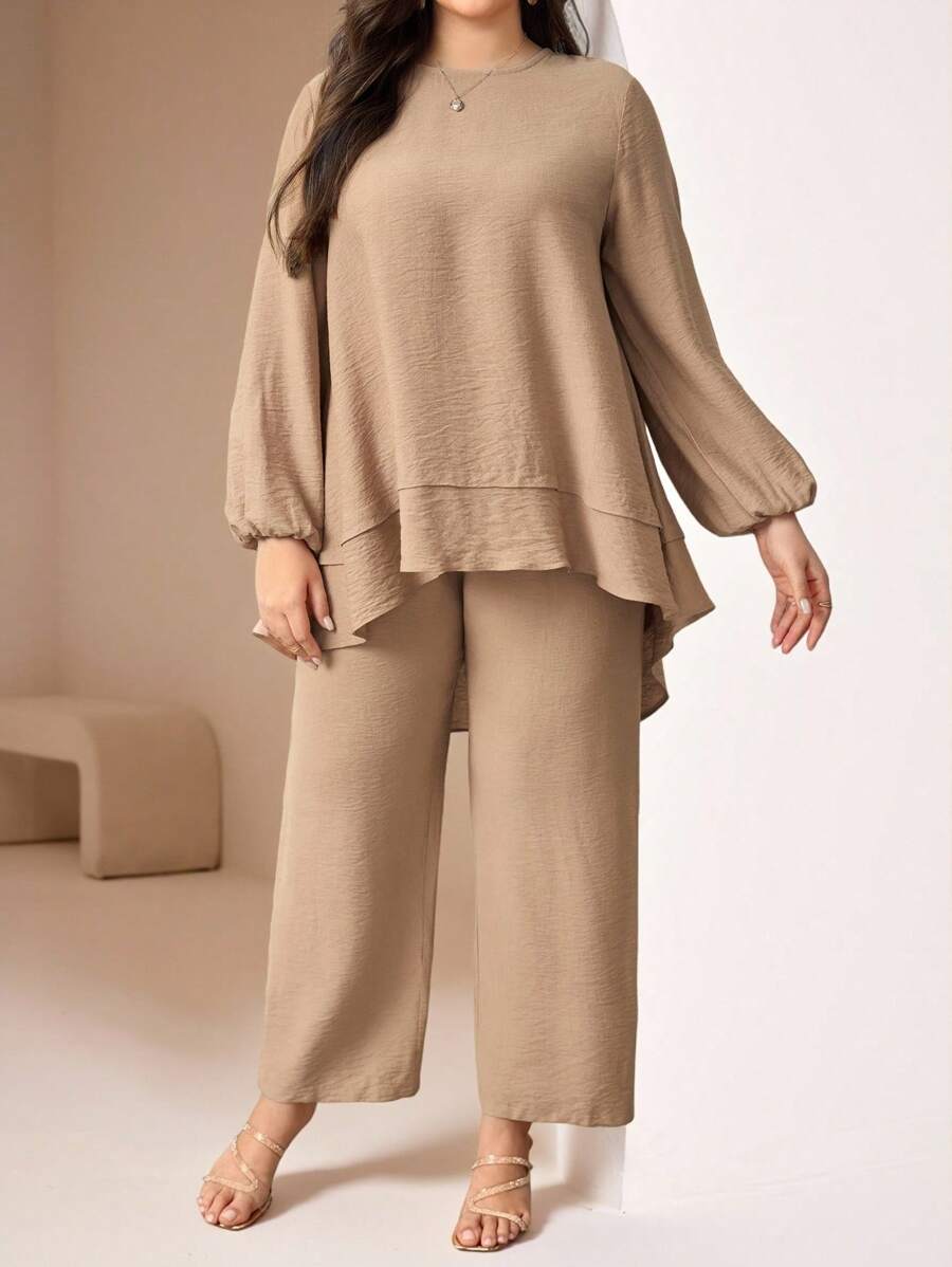 Jasnobrązowy komplet spodnie bluzka (2XL)