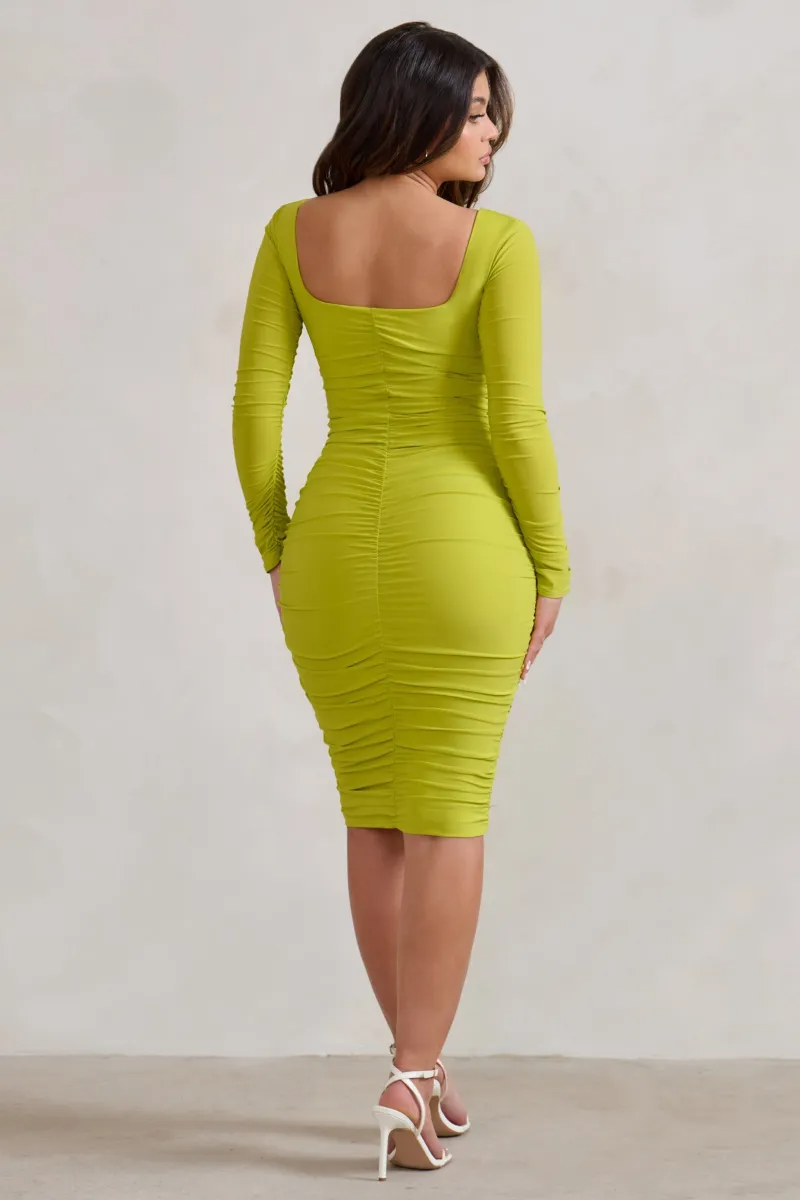 Limonkowa dopasowana sukienka (34)