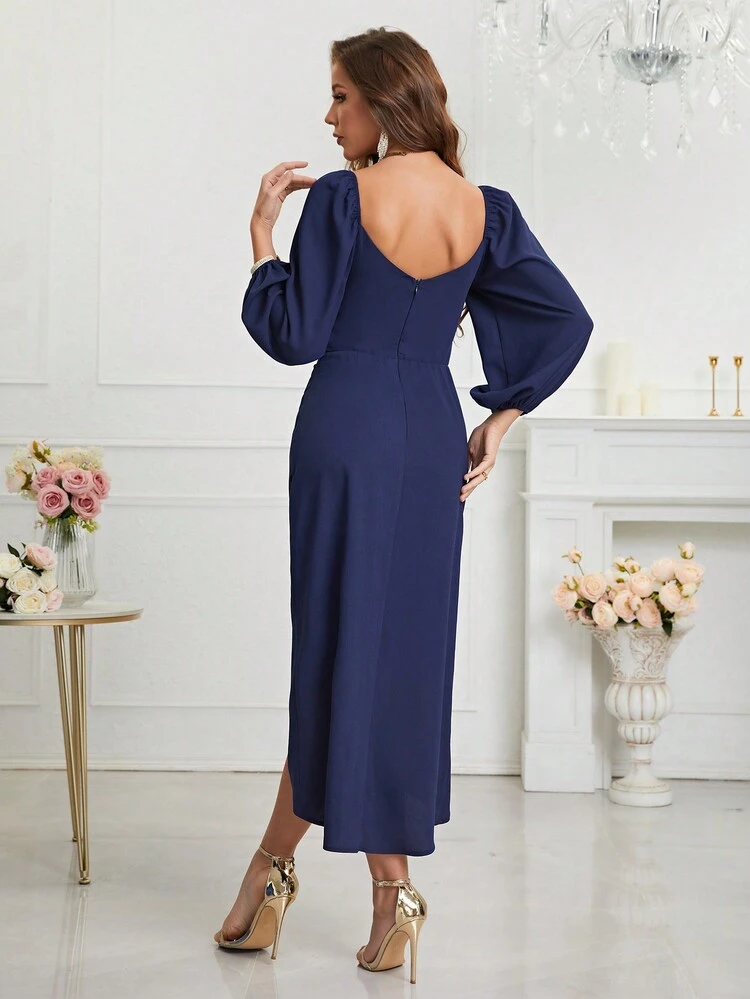 Ta granatowa asymetryczna sukienka z dekoltem serek lub V to idealny wybór na wieczorną okazję. Wykonana z wysokiej jakości materiału, zapewni Ci nie tylko wygodę, ale także wyjątkowy wygląd. Długie rękawy dodają elegancji i sprawią, że poczujesz się niepowtarzalnie.