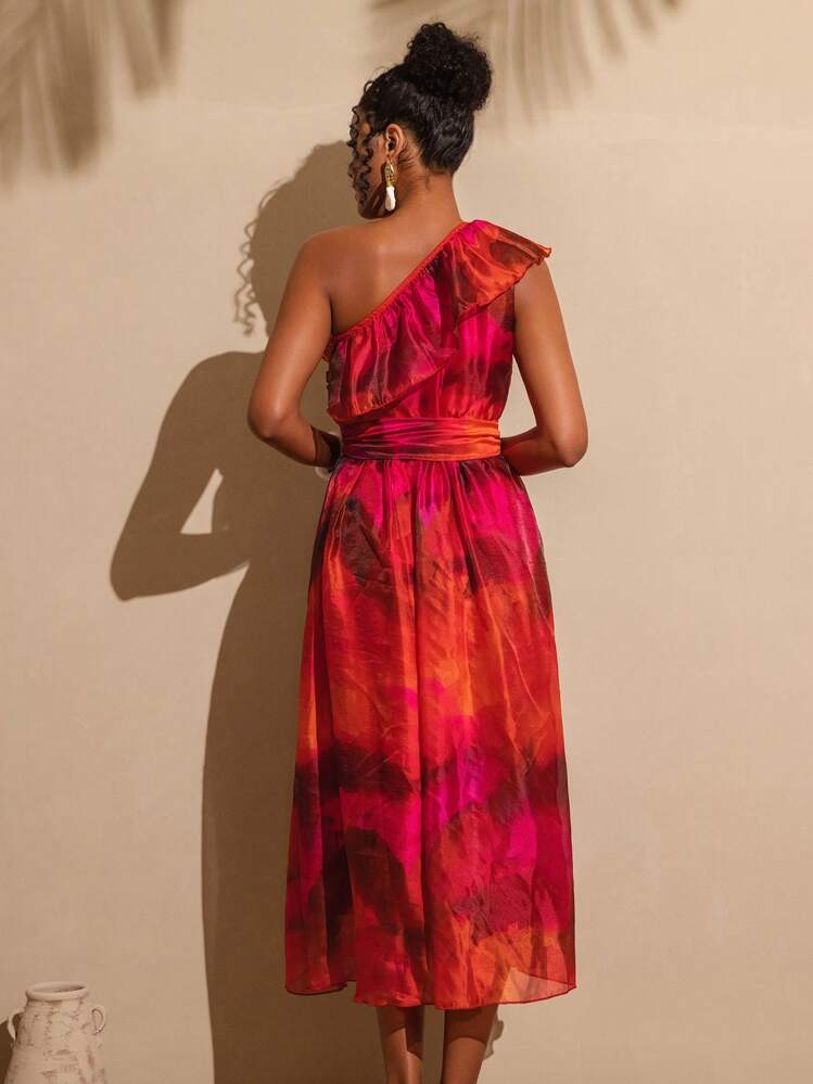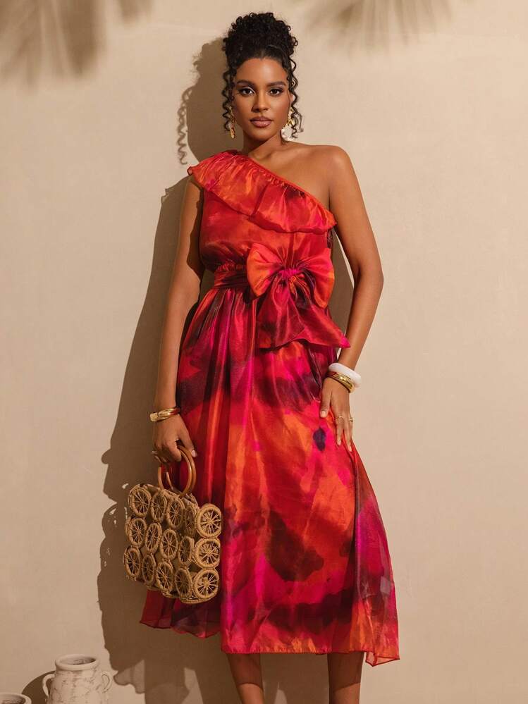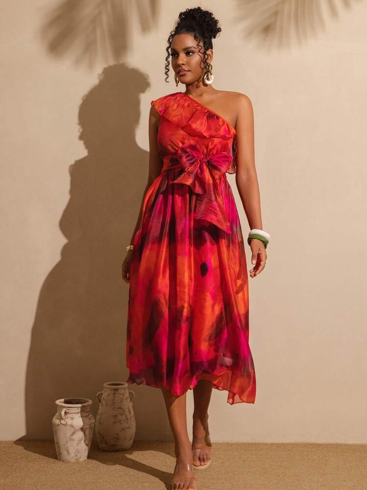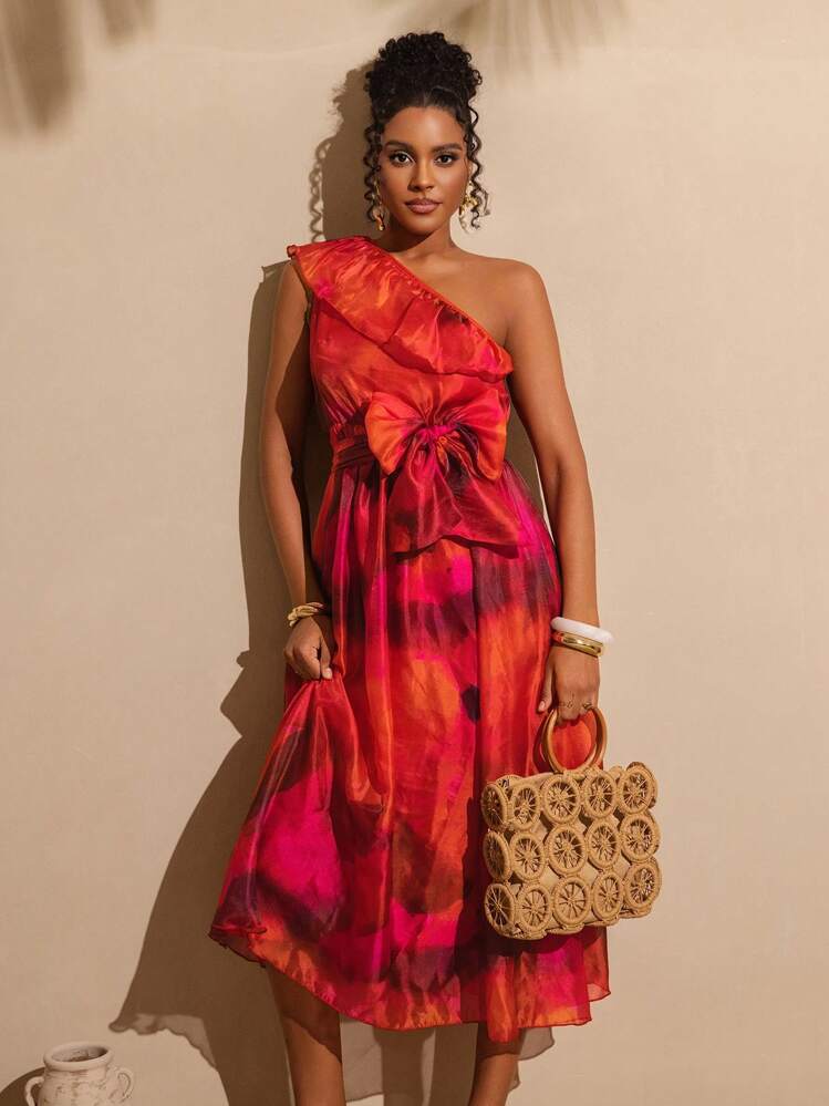 Kolorowa sukienka z wyrazistym wzorem. Dekolt asymetryczny i bez rękawów dodają jej lekkości i elegancji. Idealna na letnie wyjścia i imprezy, zarówno wieczorem jak i w ciągu dnia.