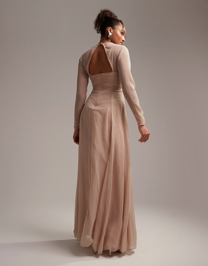 Beżowa sukienka maxi długie rękawy (38)