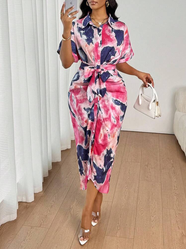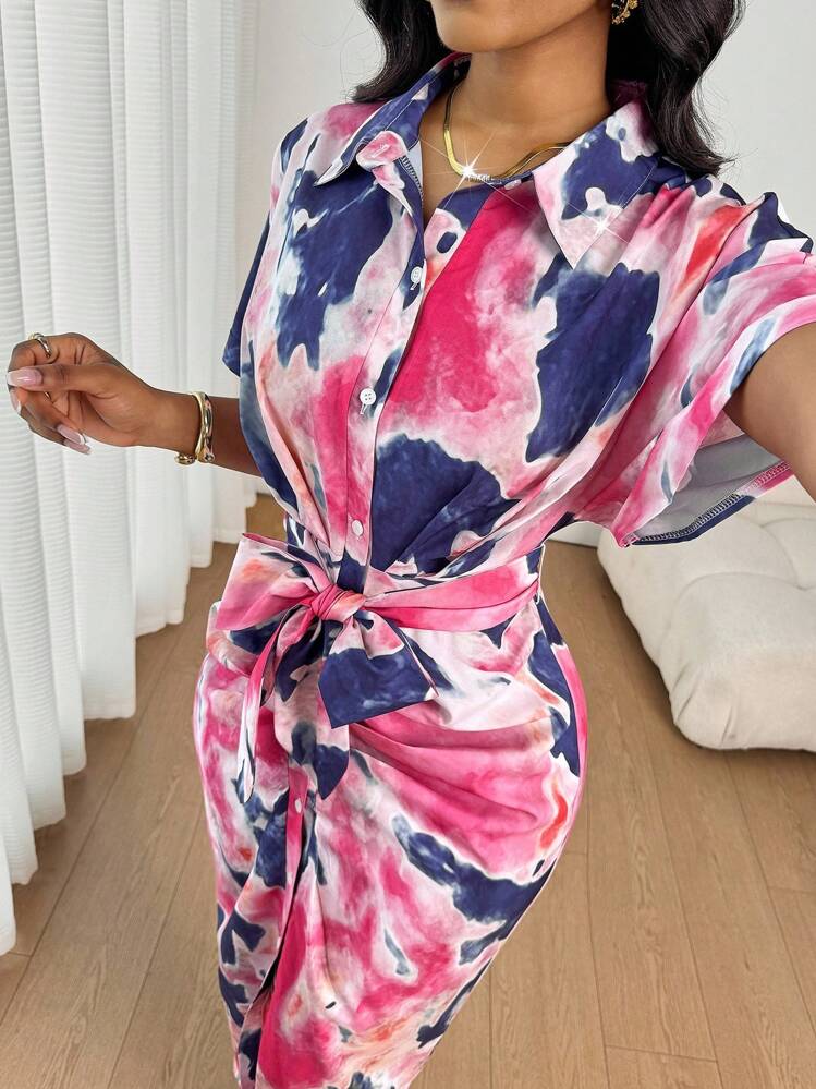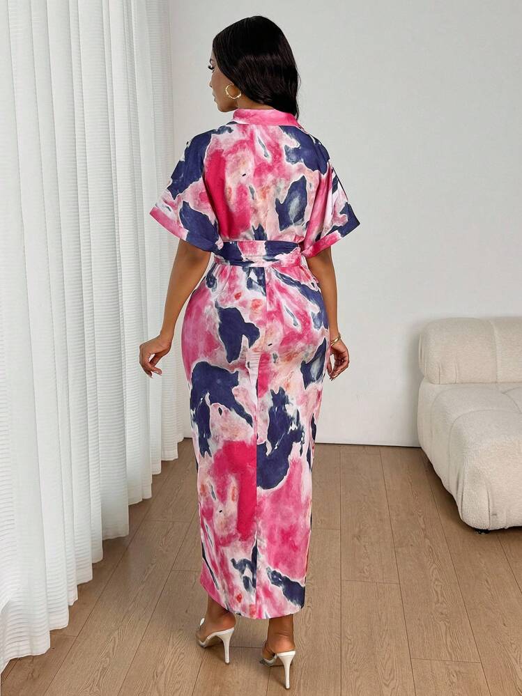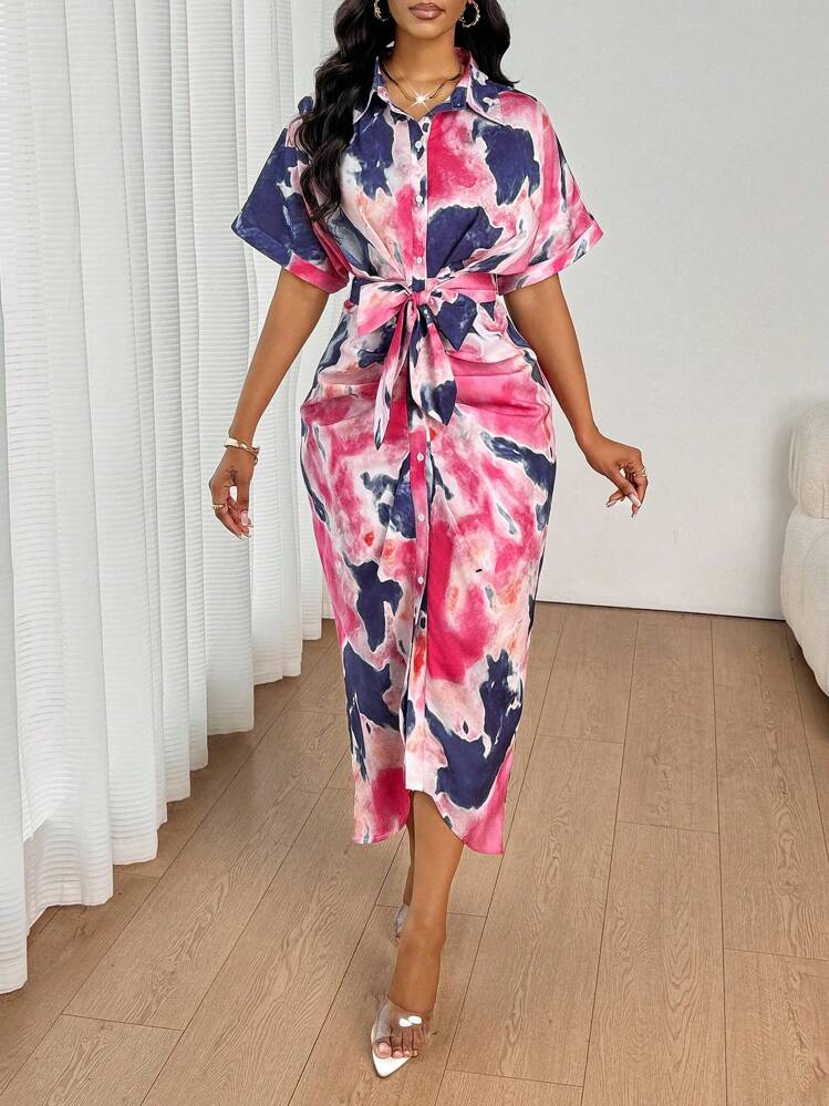 Kolorowa koszulowa sukienka pasek (XL)