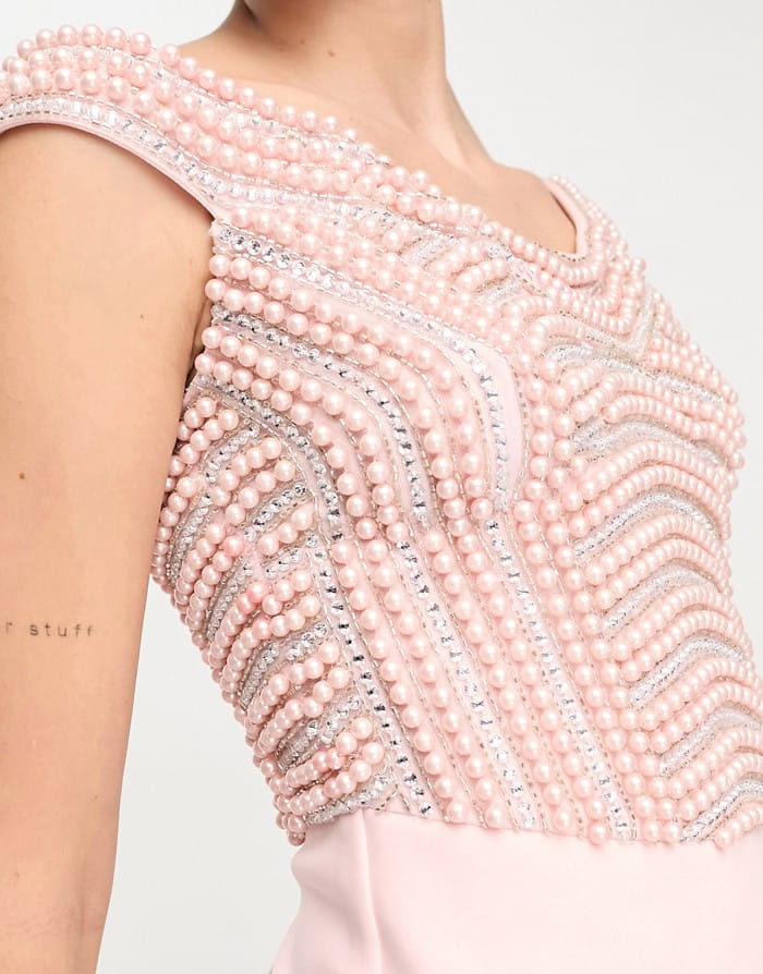Różowa zdobiona sukienka midi (40)
