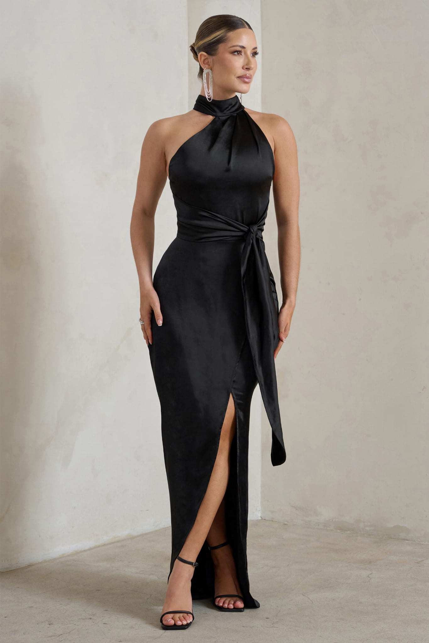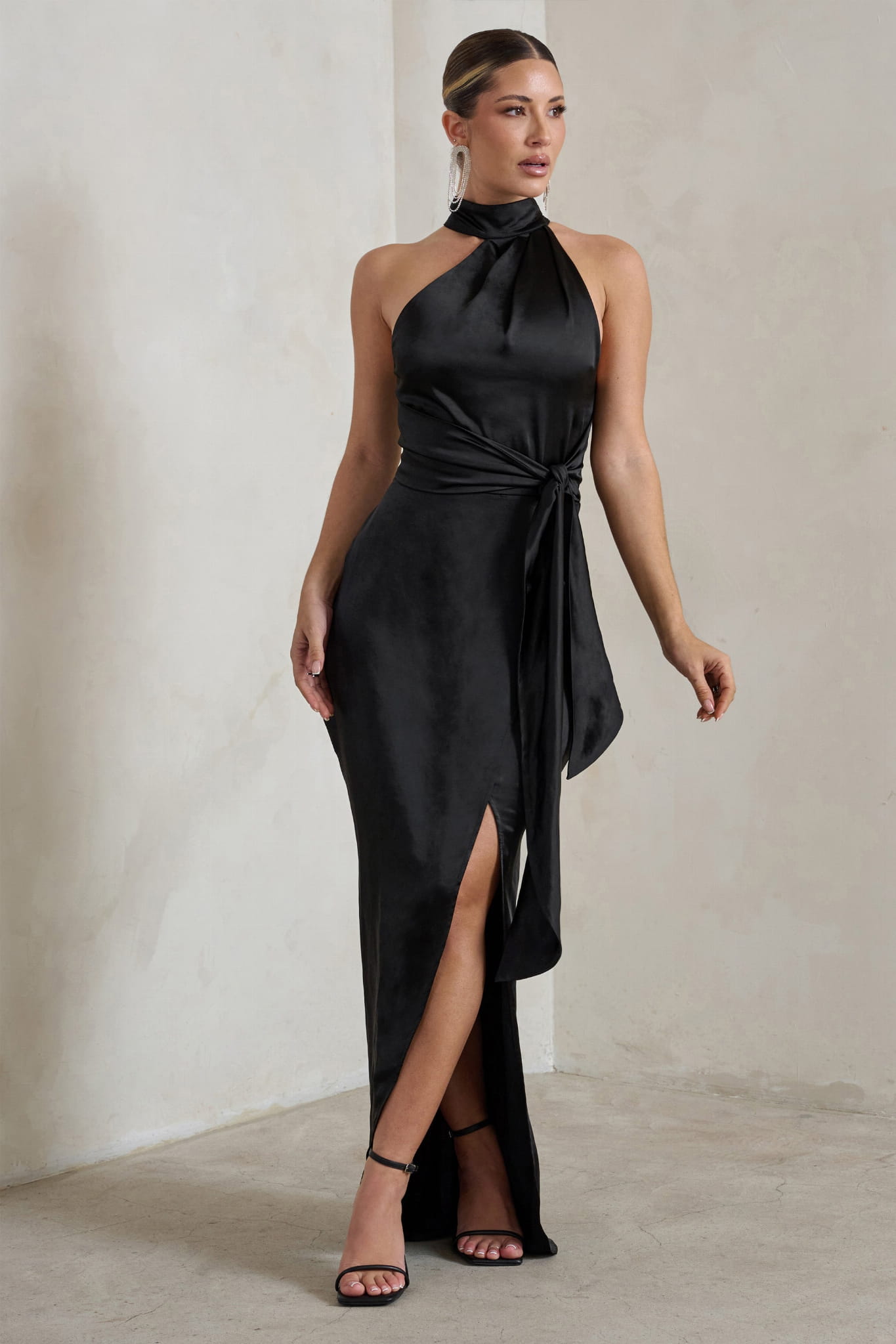 Czarna asymetryczna sukienka wiązanie (34)