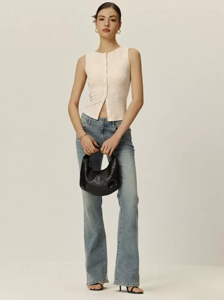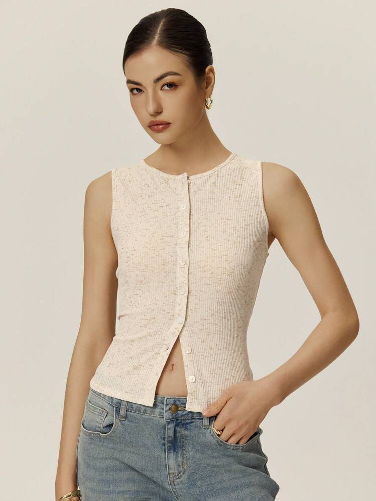 Beżowy top guziki melanż (L)