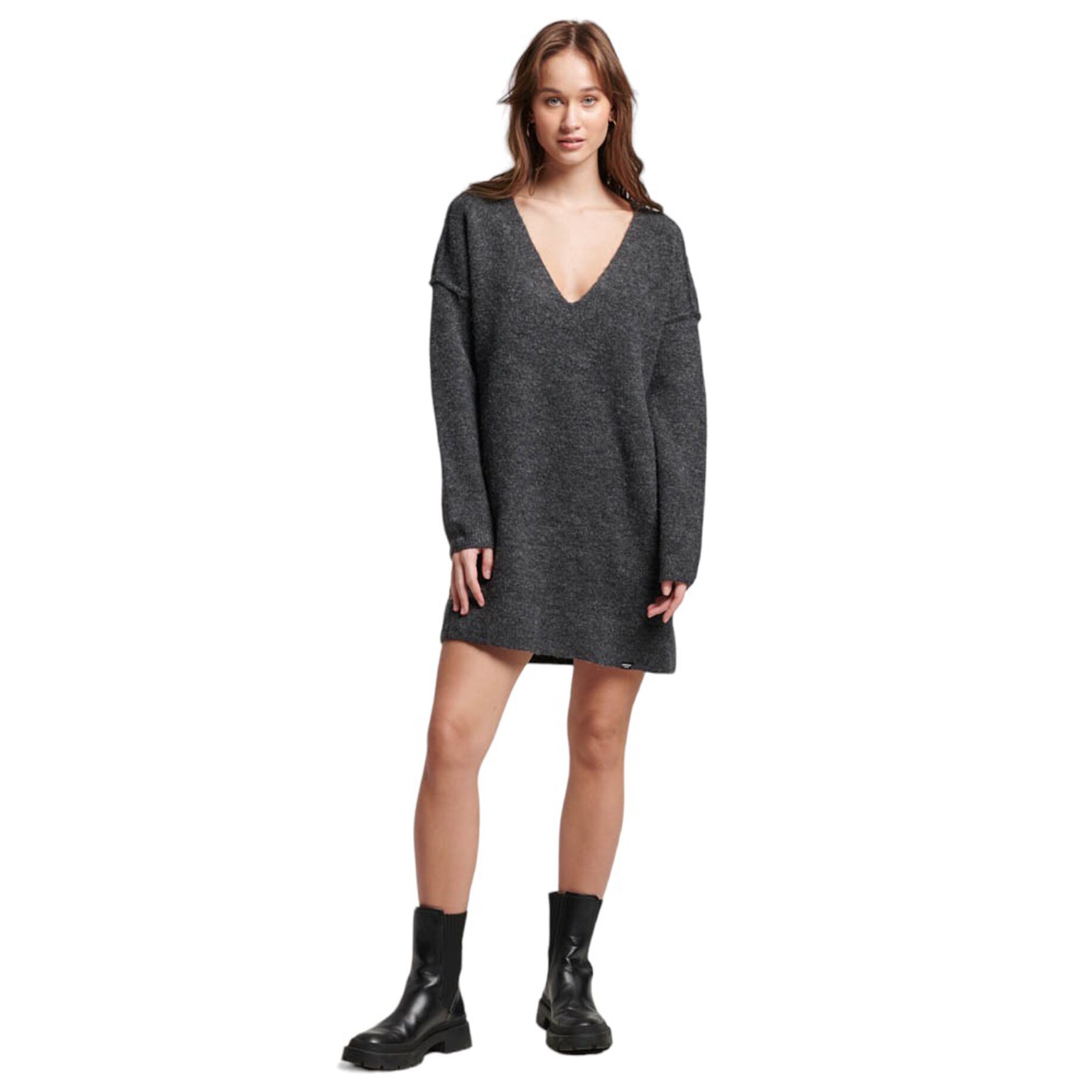 Luźna szara sukienka wełna (38)