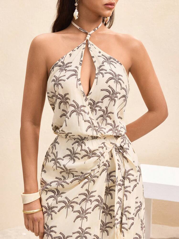 Ecru sukienka mini w delikatny wzór idealna na letnie dni. Kolor ecru nadaje jej lekkości i elegancji, a odkryte plecy dodają seksapilu. Bez rękawów, co sprawia, że idealnie nadaje się na ciepłe letnie wieczory.