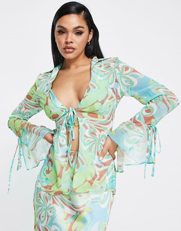 Kolorowy prześwitujący top wzór (38)