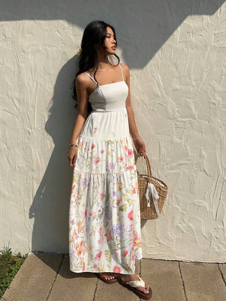 Elegancka biała sukienka maxi z delikatnym wzorem to idealny wybór na letnie dni. Prostokątny dekolt i ramiączka dodają lekkości, a długość maxi podkreśla kobiecą sylwetkę.