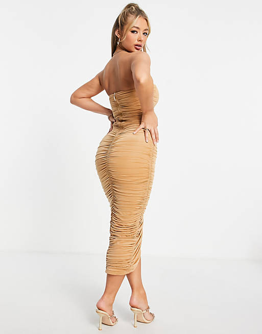 Camelowa sukienka marszczenia (38)
