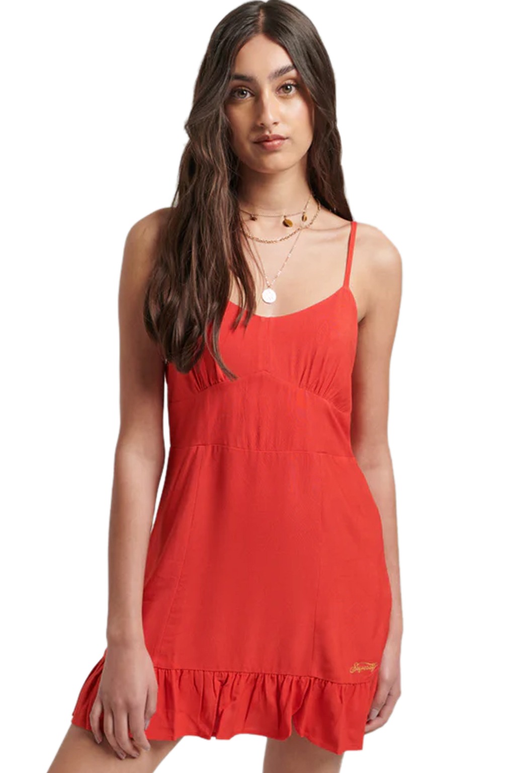 Czerwona sukienka mini to must-have dla każdej kobiety. Dzięki swojej kuszącej długości oraz dekoltowi na ramiączkach, z pewnością przyciągnie uwagę na każdej imprezie.