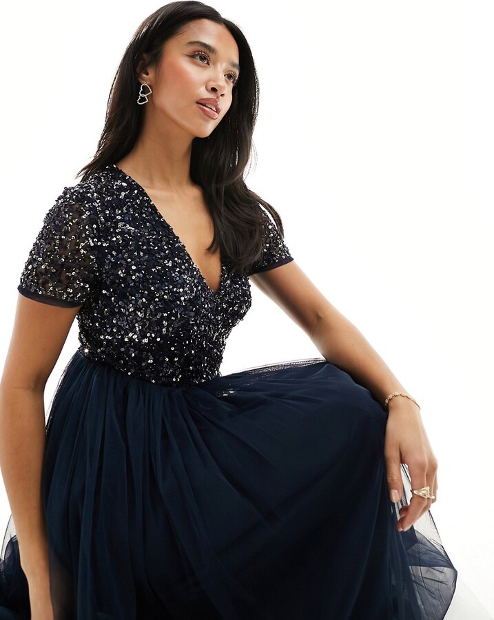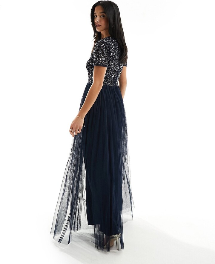 Zdobiona granatowa sukienka (36)