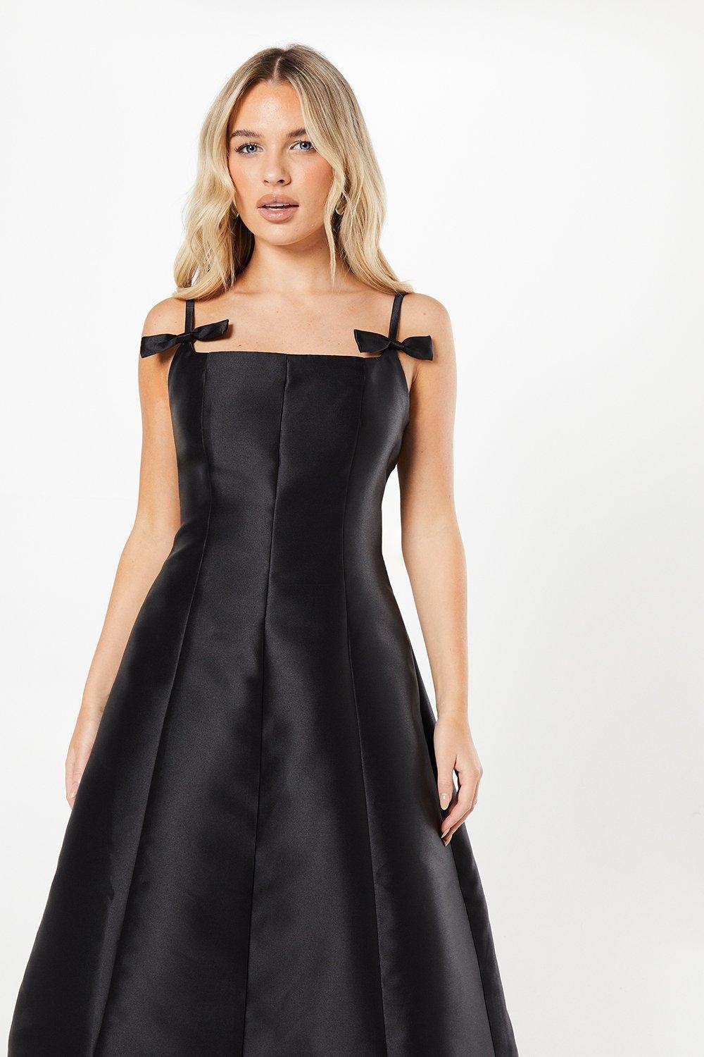 Czarna trapezowa sukienka kokardy (34)