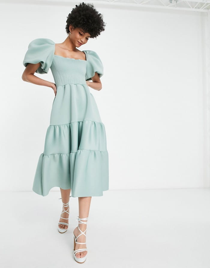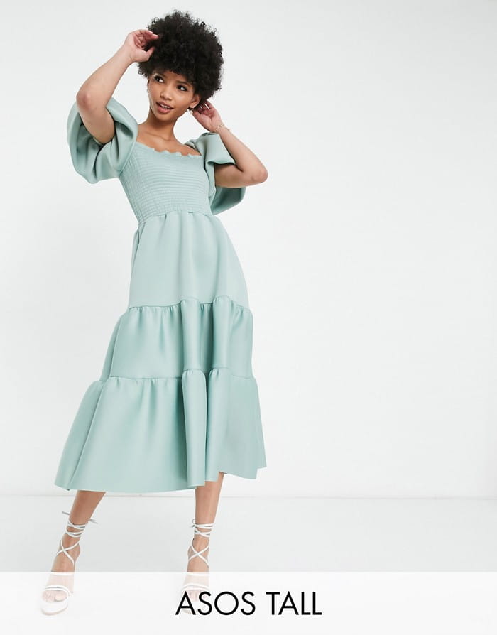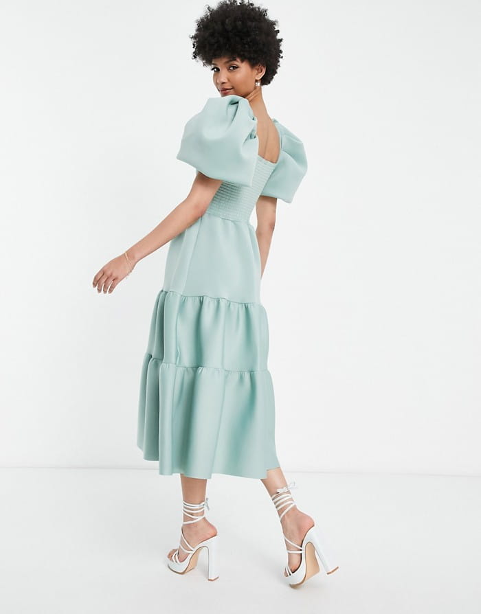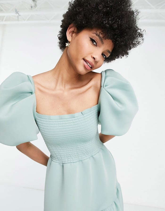 Szałwiowa piankowa sukienka bufki (38)