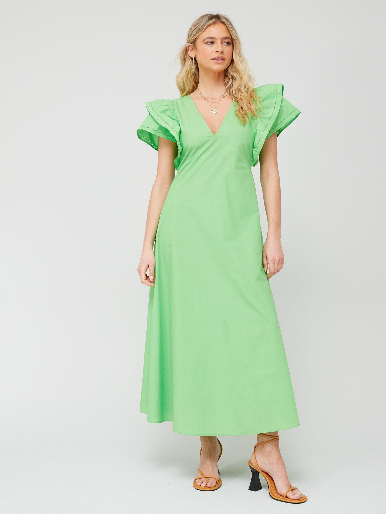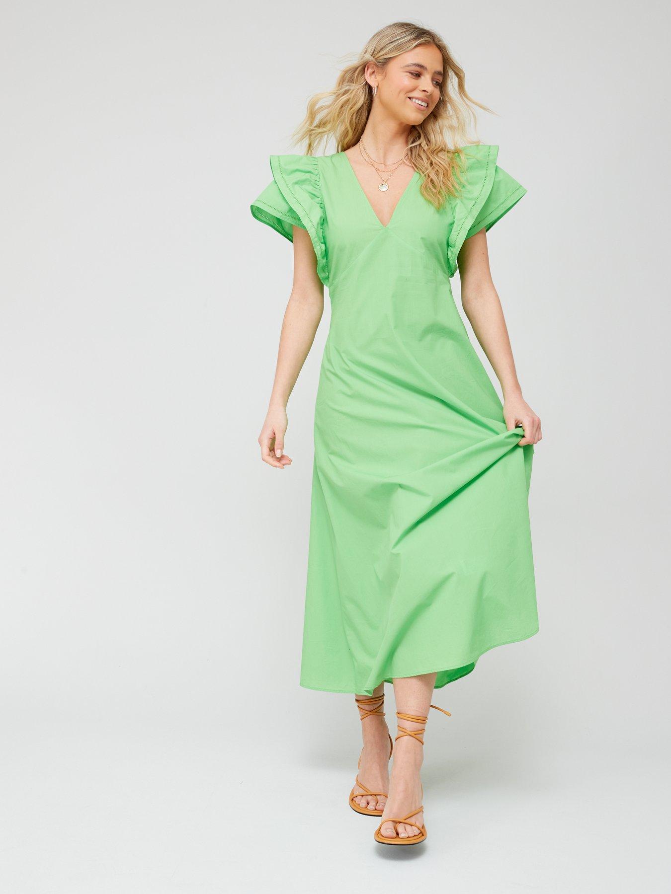 Zielona sukienka midi falbana (38)