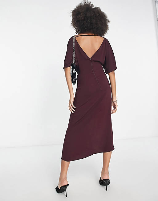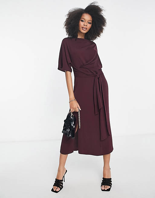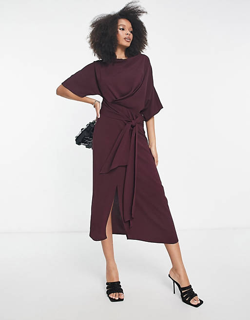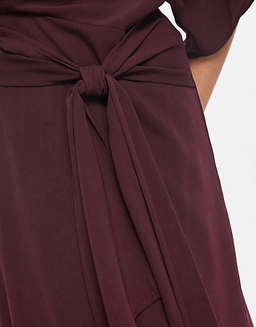 Bordowa sukienka midi wiązanie (32)