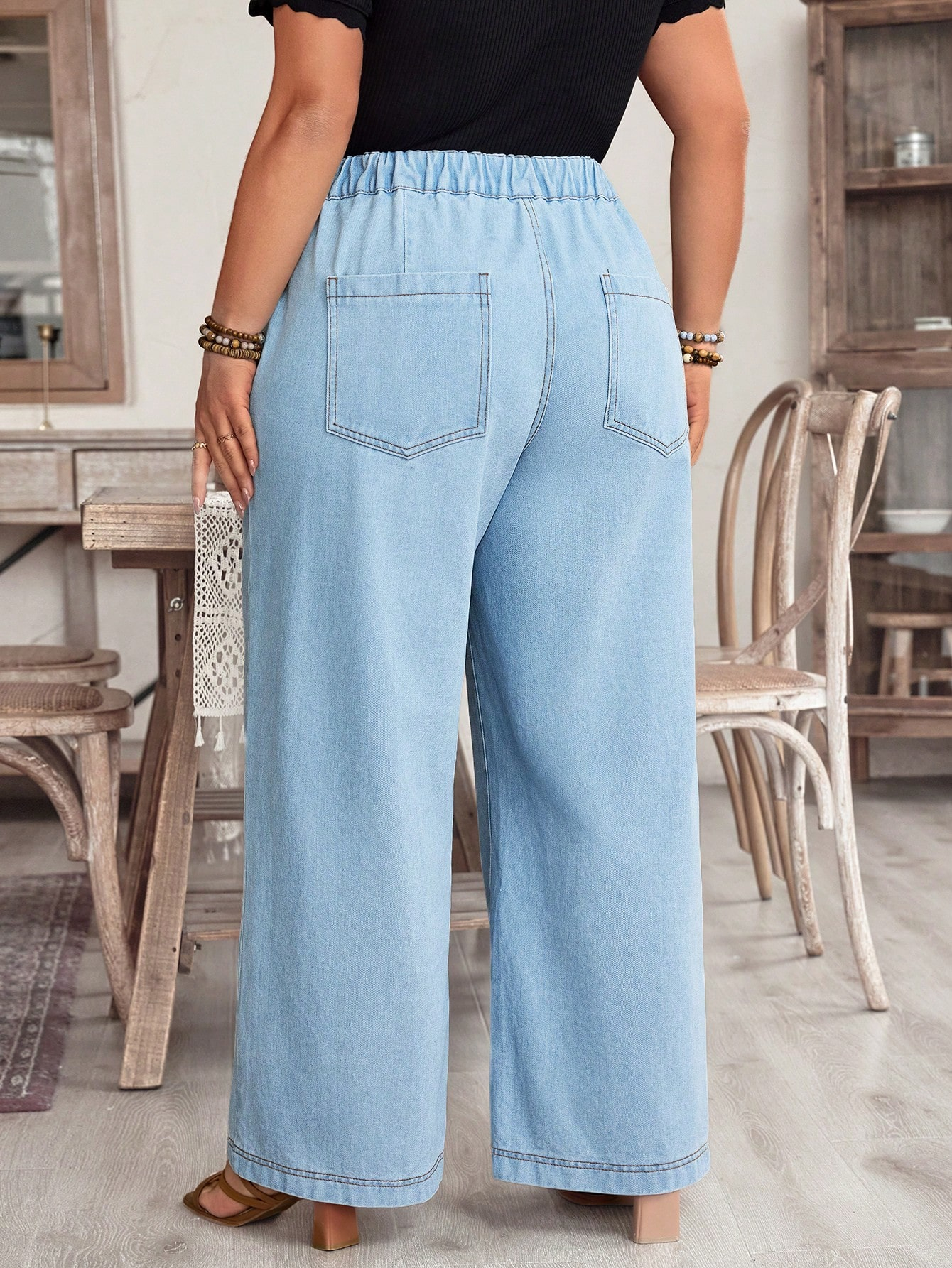 Niebieskie proste jeansy kieszenie (1XL)