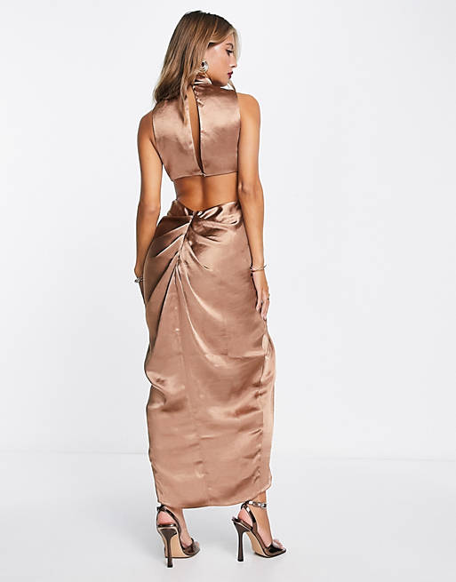 Satynowa sukienka marszczenia (34)