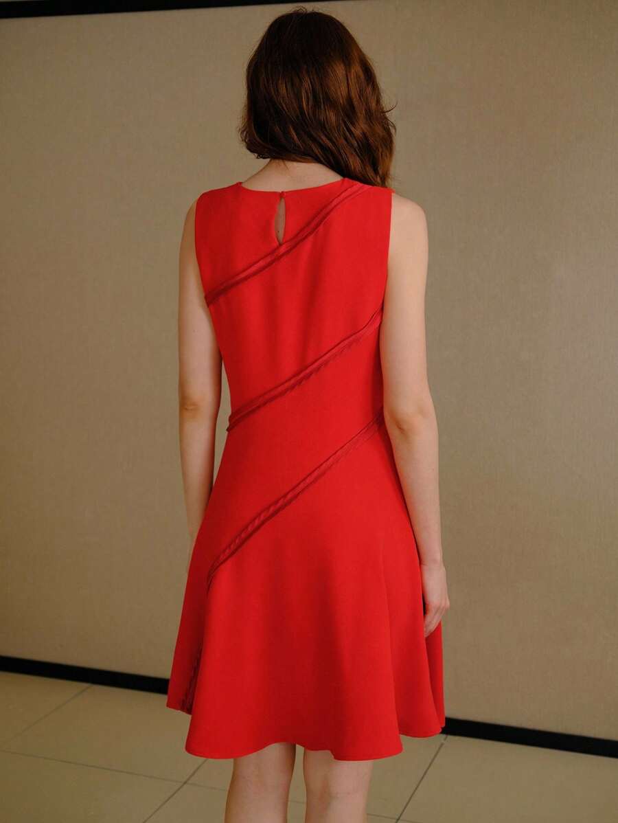 Modna czerwona sukienka bez rękawów to idealny wybór na letnie dni. Efektowny dekolt typu łódka uwydatni szyję i ramiona, a krótkie rękawy dodadzą lekkości. Dopasowany krój podkreśli sylwetkę.