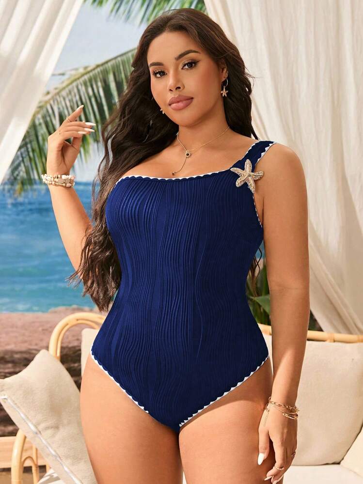 Granatowy strój kąpielowy złota ozdoba (3XL)