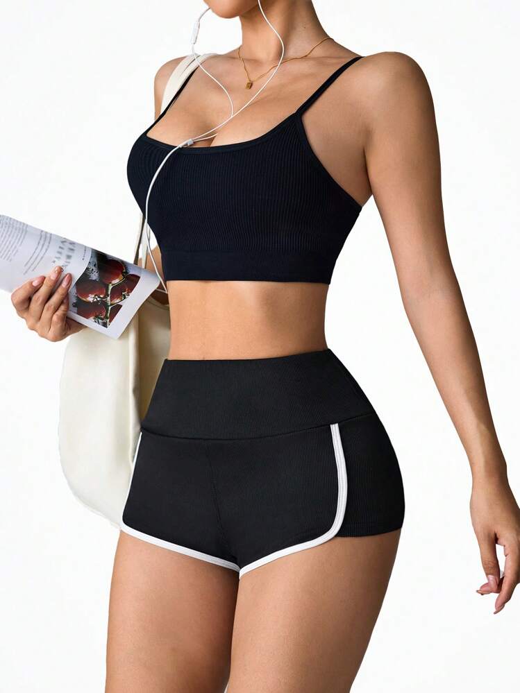 Czarne prążkowane spodenki (XL)